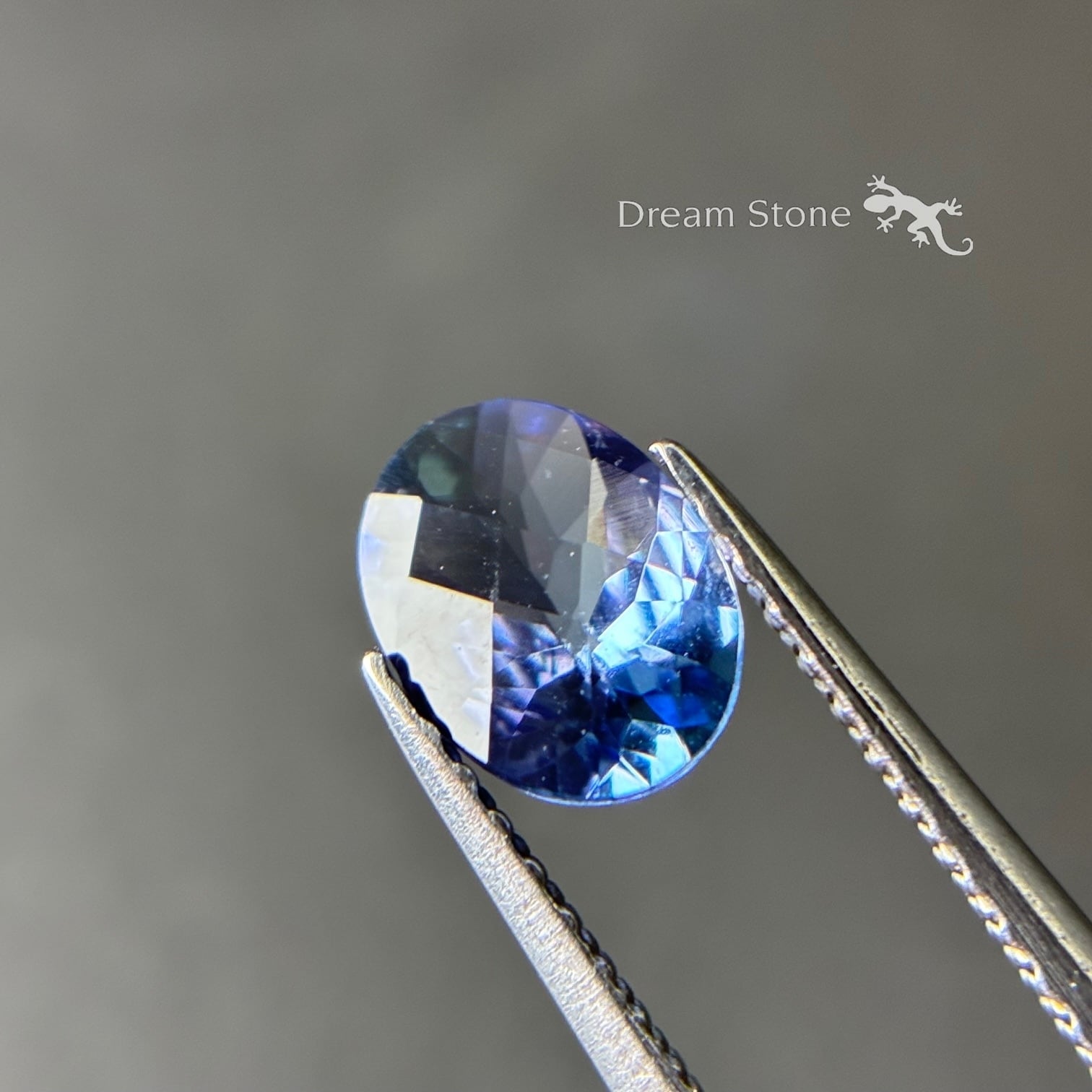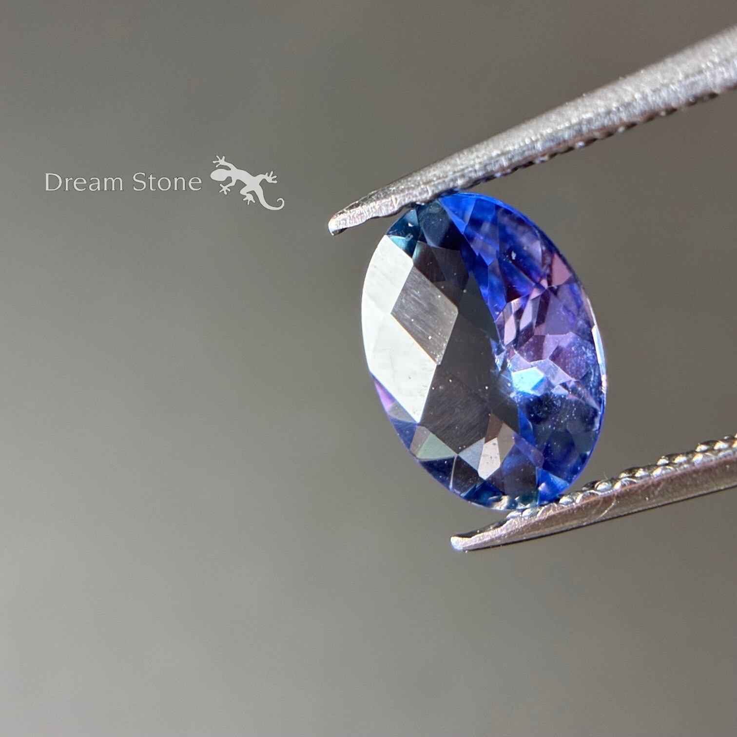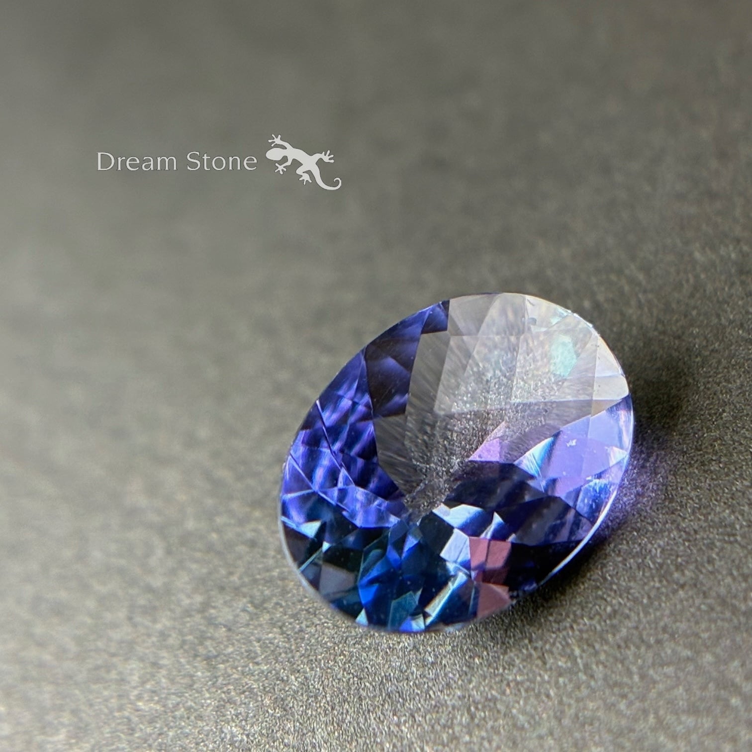 ゾイサイトは見る角度や光源の種類によって青、紫、赤みがかった色など、複数の色を見せる多色性(プレオクロイズム)を持つ石です。この幻想的な色の変化が、他の石にはない魅力のひとつですね。