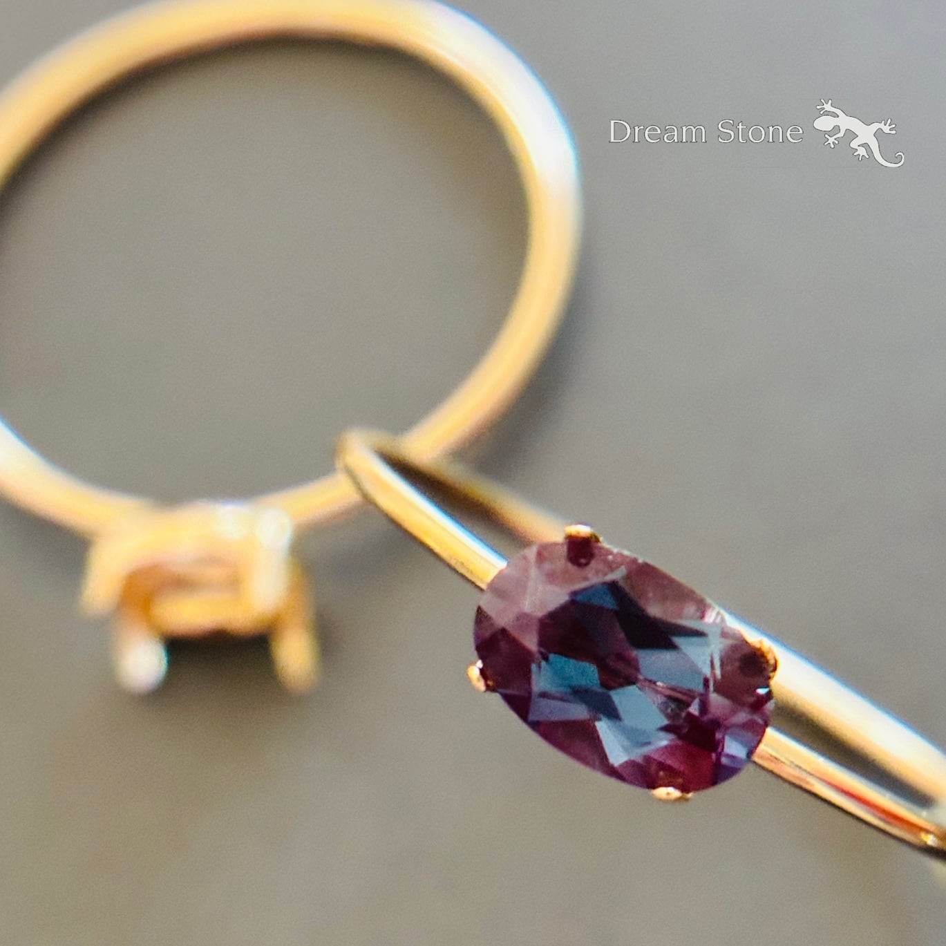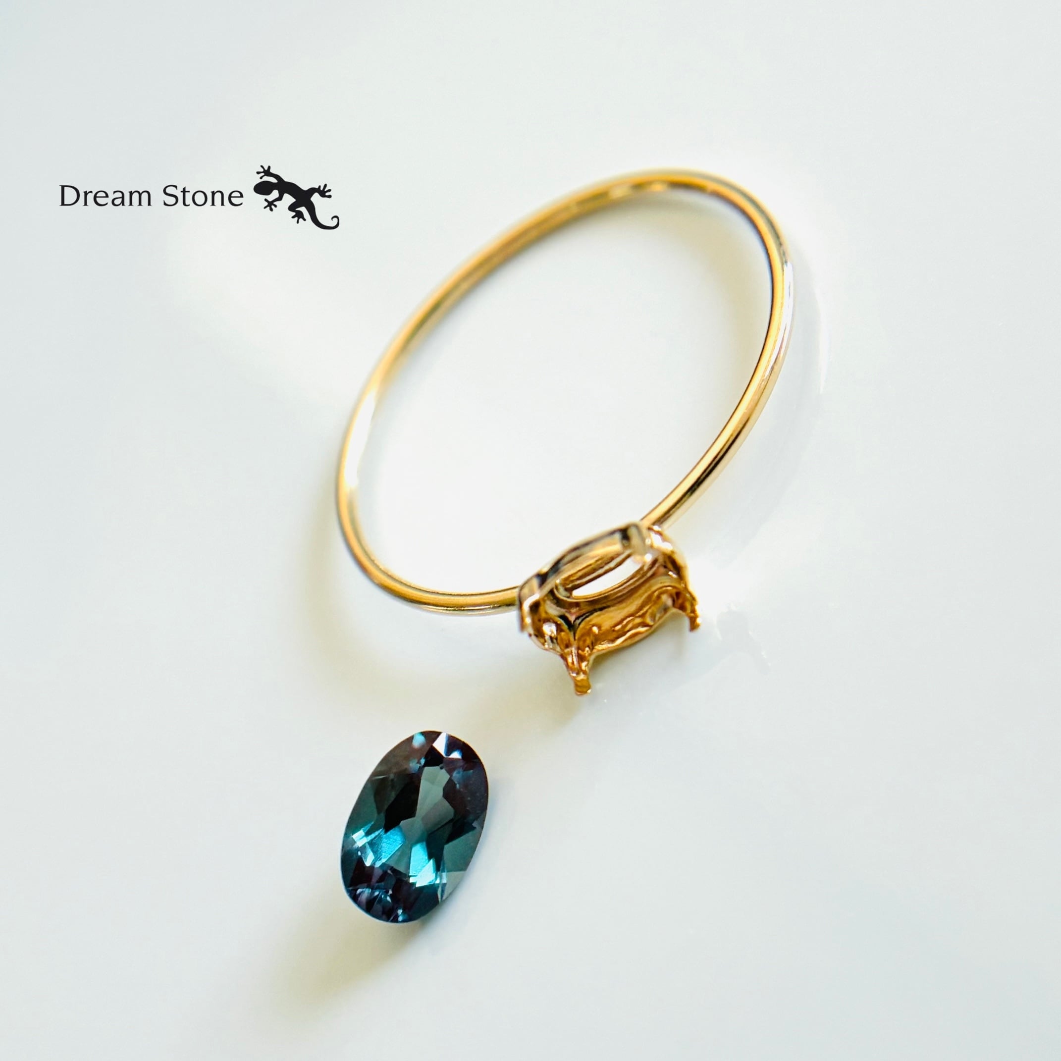 幻想的なカラーチェンジを楽しめる高品質な合成石。フォレストグリーンの濃緑色から、燃えるような赤紫色へと変貌するラボグロウン・アレキサンドライト。光源で色の変化が起こる姿はとても興味深く、濃緑色から青緑色、赤紫色から深紅色へと変貌し、様々な表情を魅せてくれます。時折ちらっと見え隠れする群青色も、ラボグロウン・アレキサンドライトならではの魅力のひとつですね。物静かな佇まいの中に、芯の強さや燃えるような闘志を感じさせる宝石です。(石代は別途料金が発生します。オプションで選択可。)