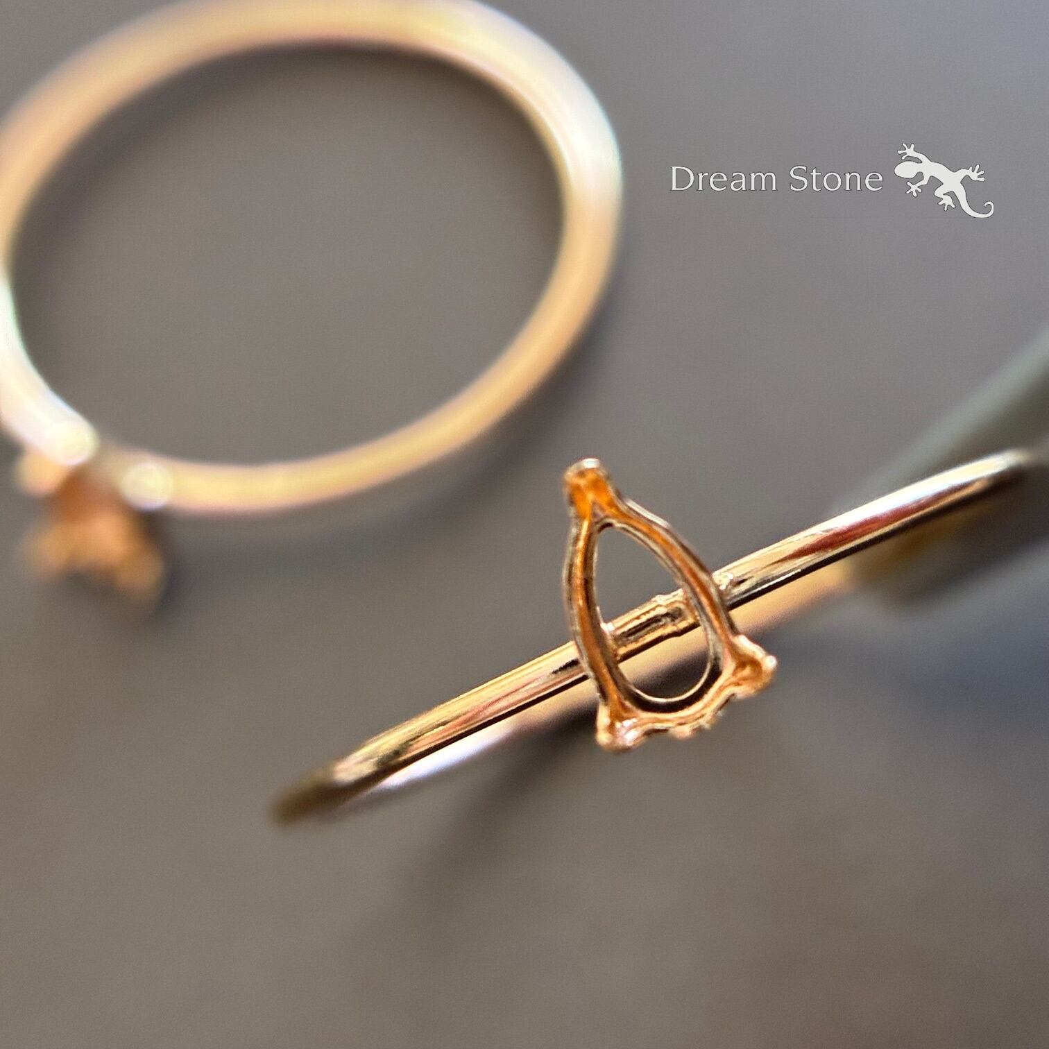 【K10YG空枠 シンプルリング/ペアシェイプ3x5】