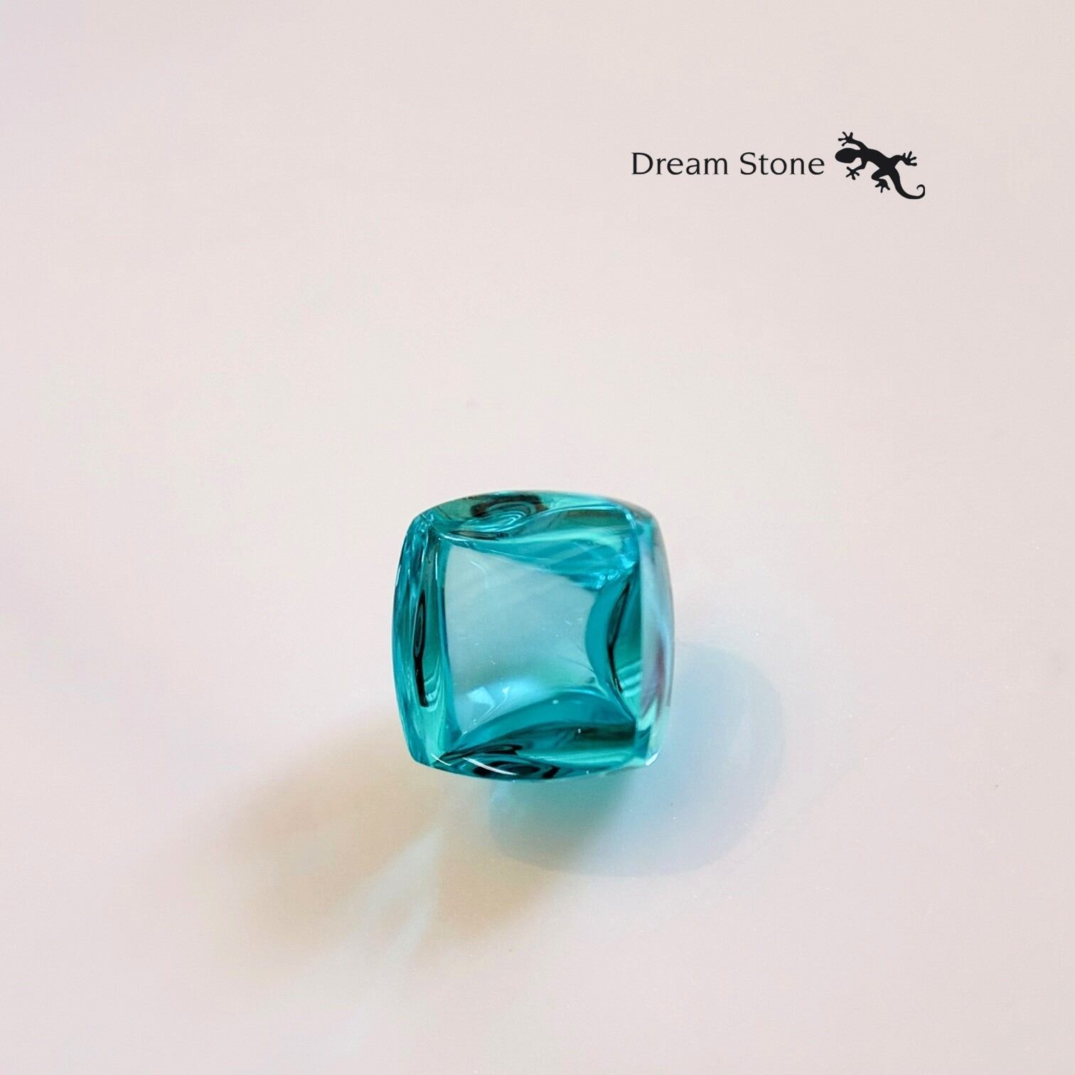 南国の海を閉じ込めたような透明感あふれるYAGのパライバブルー。光を包み込むシュガーローフが、深くやわらかな輝きを生み出しています。光の角度によって瑞々しく輝く、透明感と深みを両立した人造石。