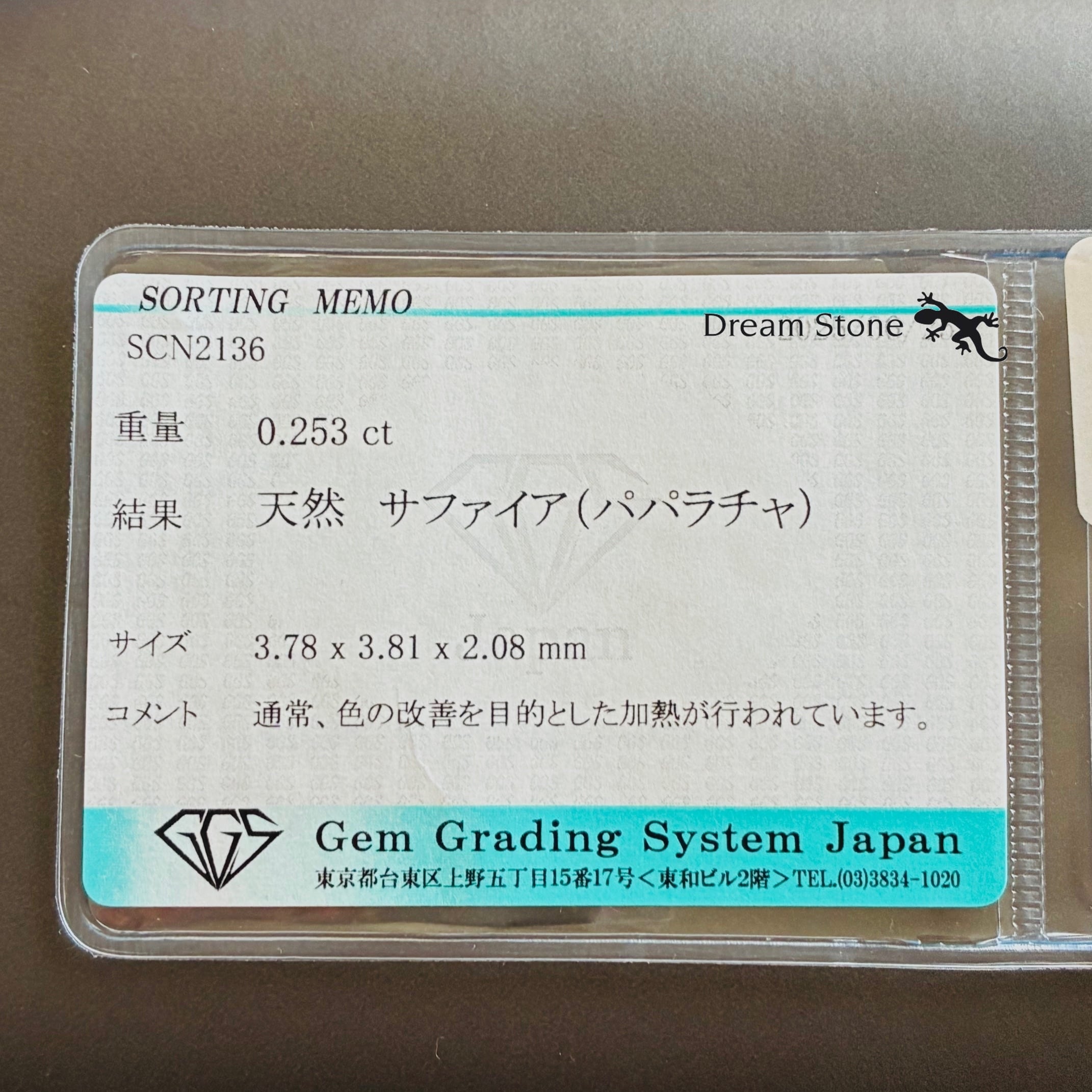 【パパラチアサファイア 0.253ct/ソーティング付 SCN2136】