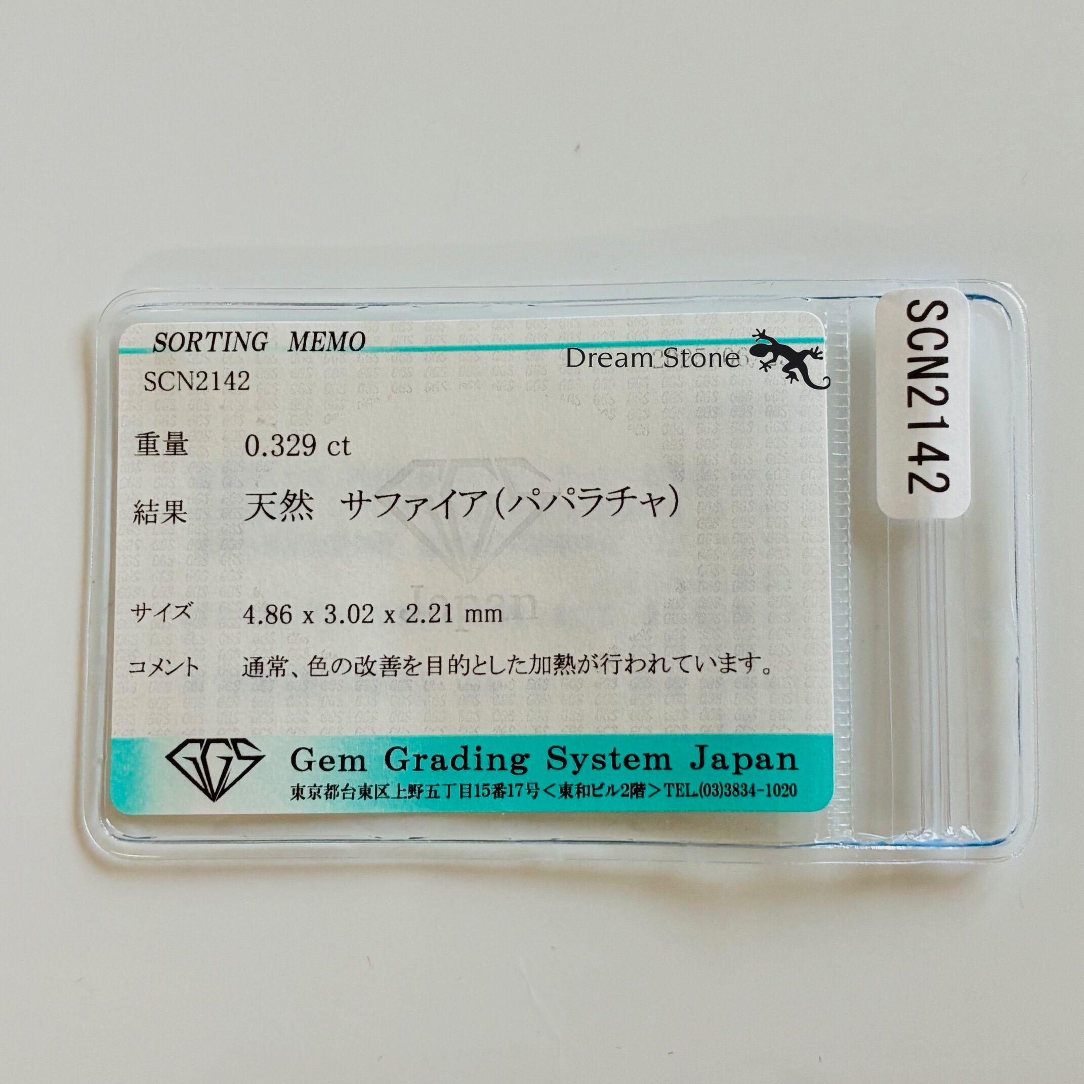 【パパラチアサファイア 0.329ct / ソーティング付 SCN2142】