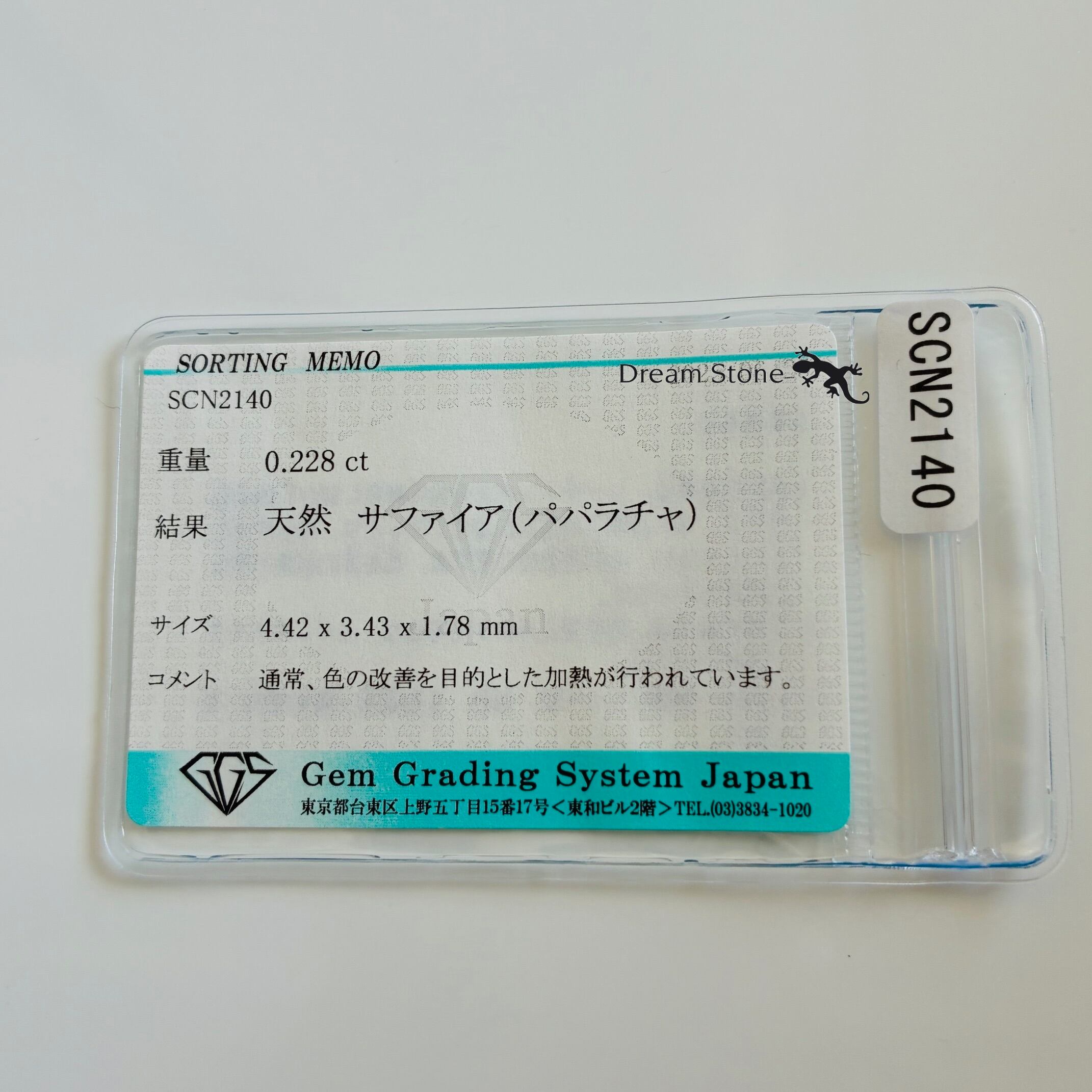【パパラチアサファイア 0.228ct / ソーティング付 SCN2140】