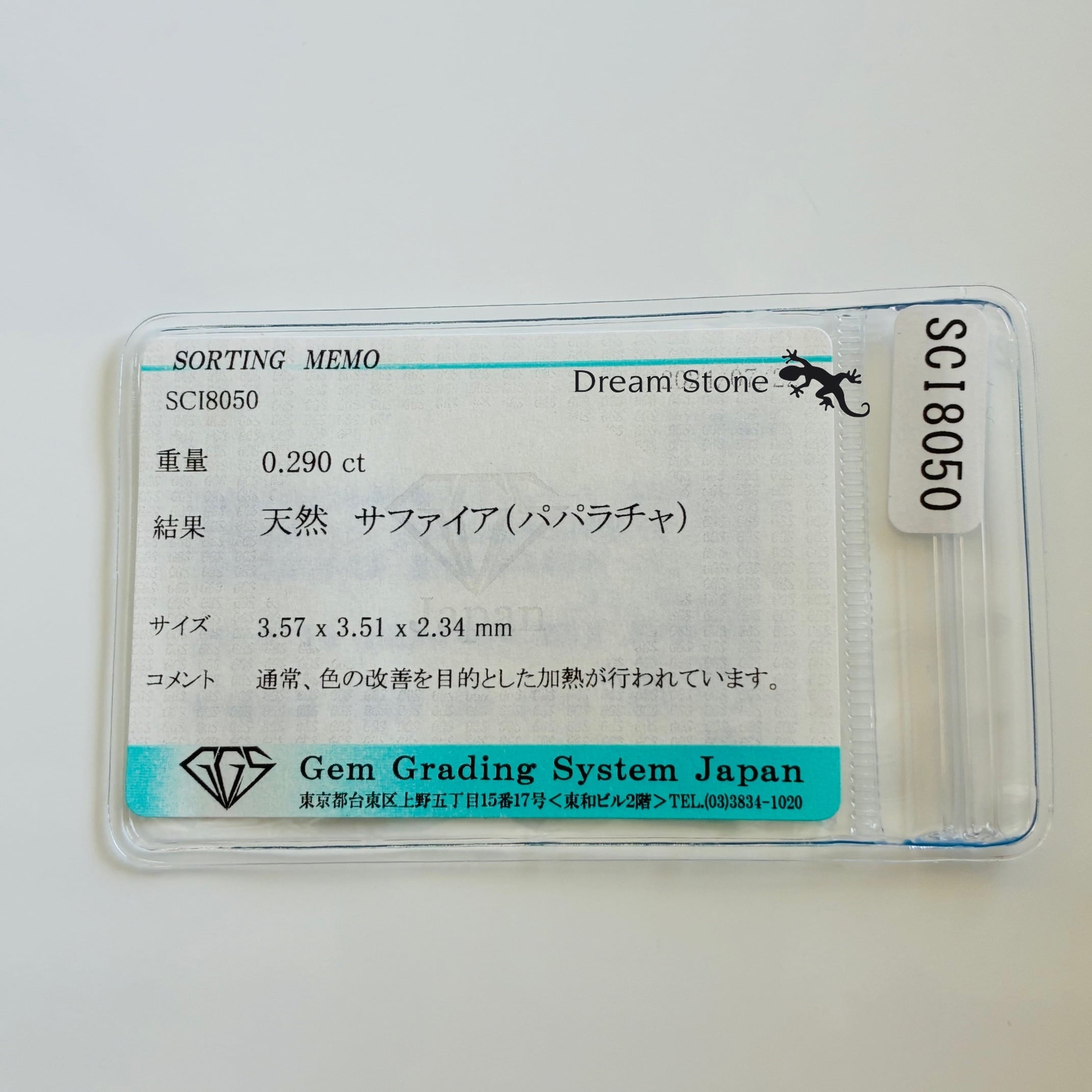 【パパラチアサファイア 0.290ct / ソーティング付 SCI8050】