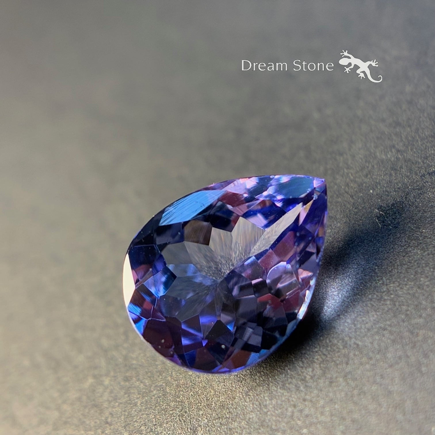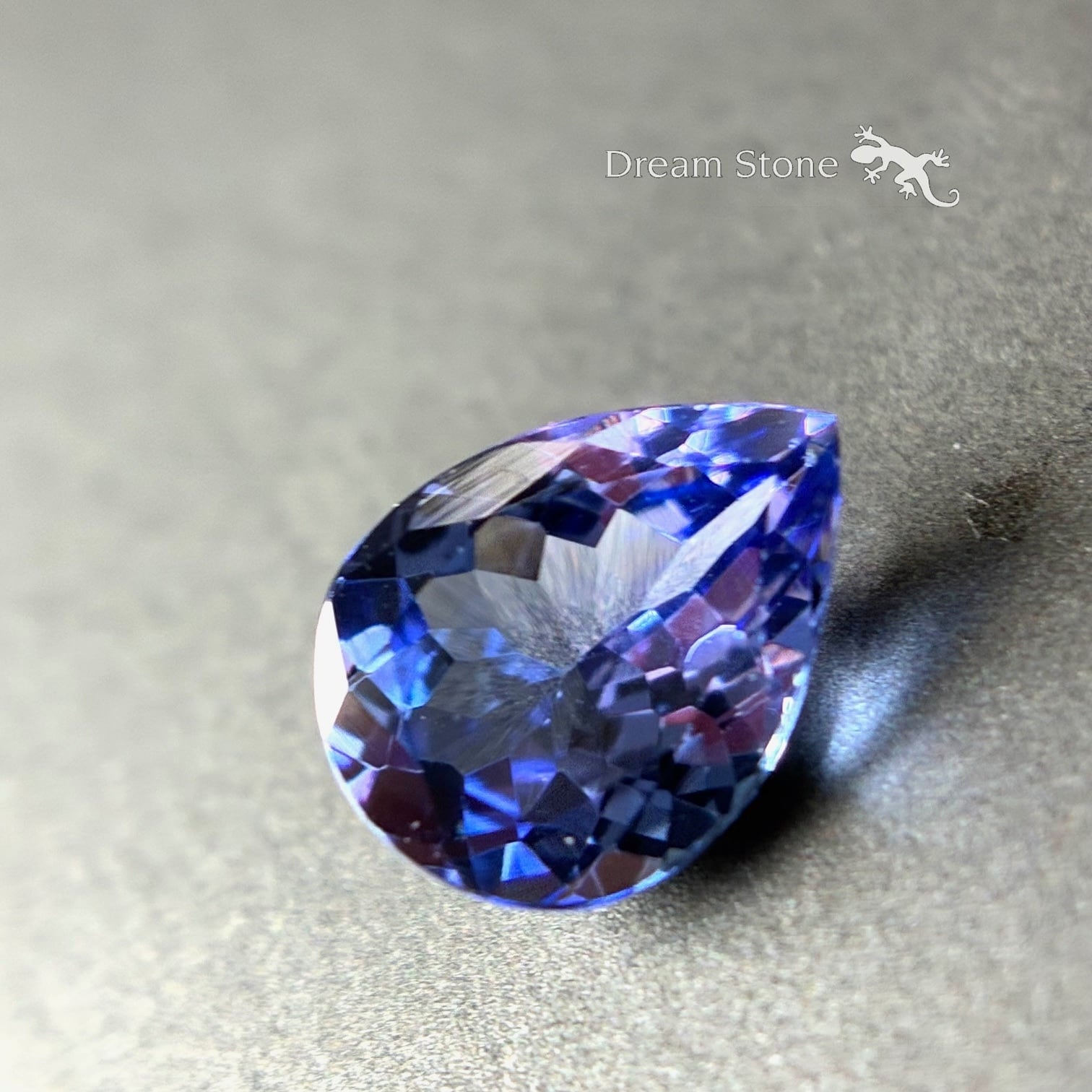 タンザナイトは見る角度や光源の種類によって青、紫、赤みがかった色など、複数の色を見せる多色性(プレオクロイズム)を持つ石です。この幻想的な色の変化が、他の石にはない魅力のひとつですね。この色の変化を楽しむアイテムとして、偏光板がおひとつ付きます。