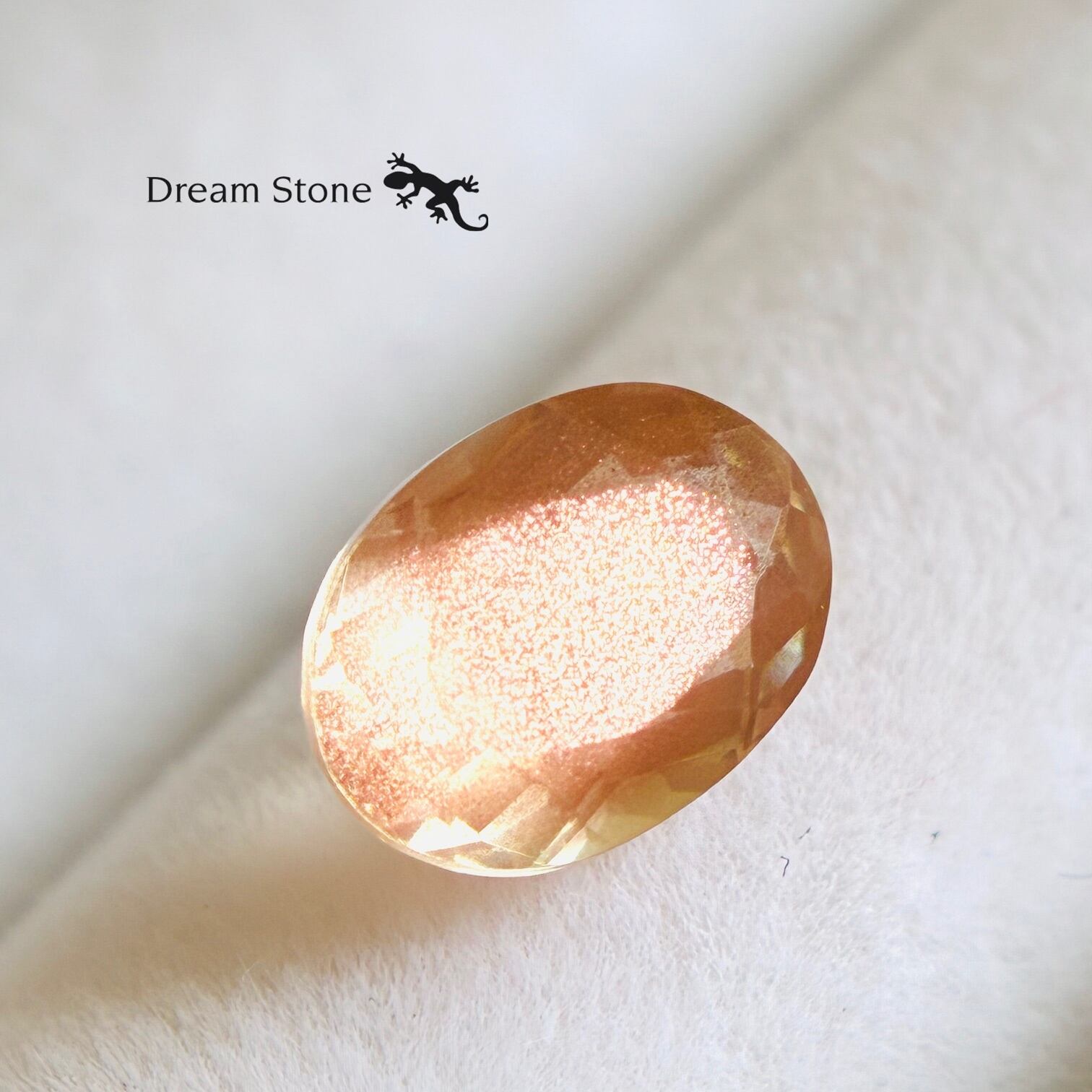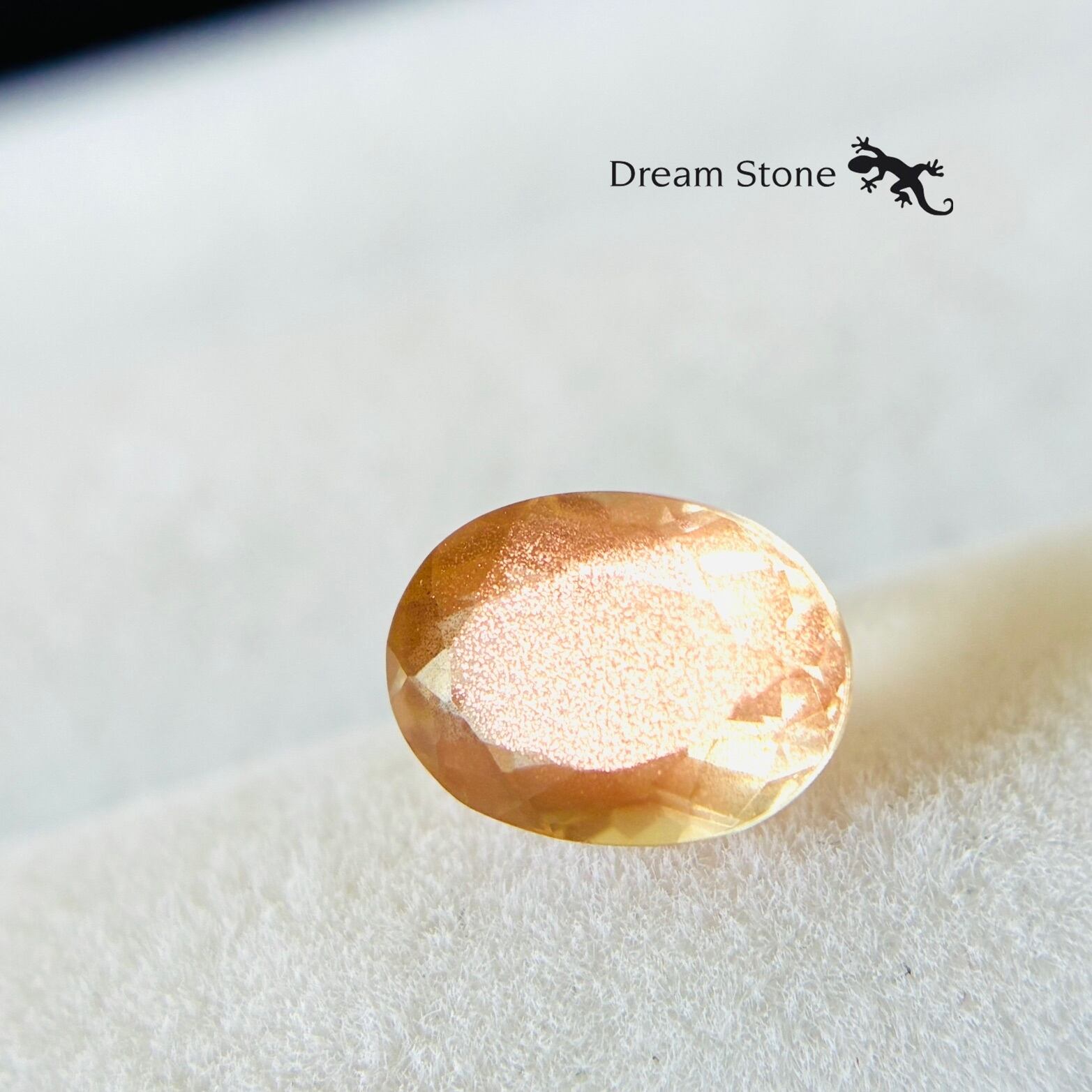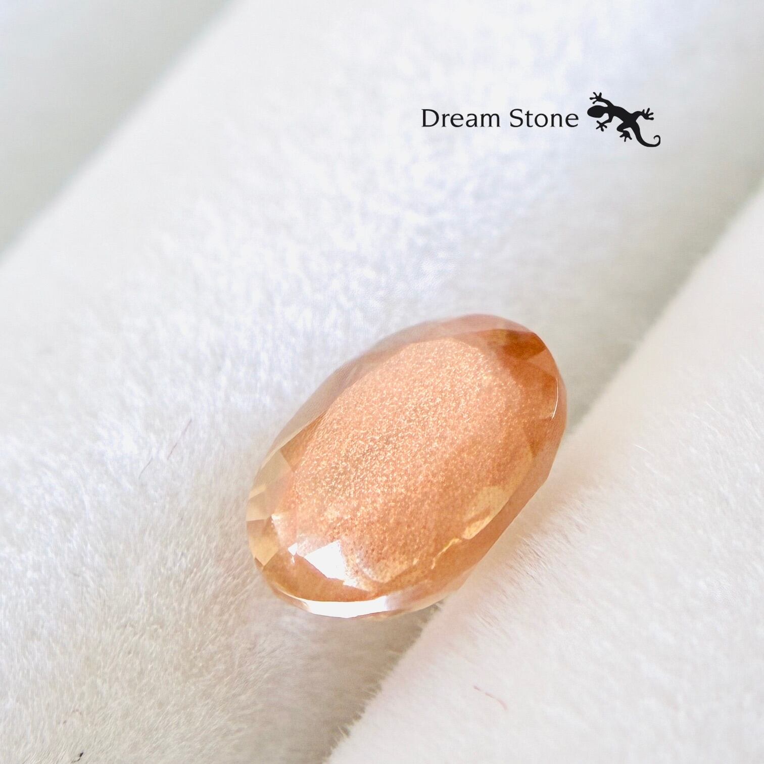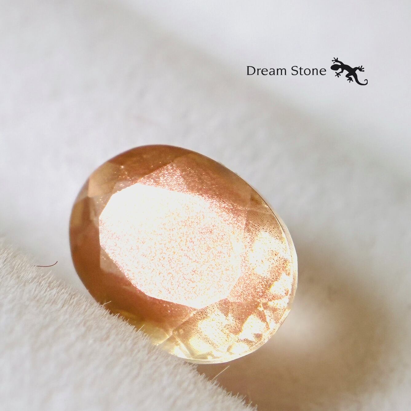 オレゴンの大地で悠久の時を経て産出されたサンストーン。内包された銅由来のインクルージョンが織りなす繊細で奥行きのあるアベンチュレッセンスが、天然石ならではの芸術を生み出しています。控えめな一見から、角度を変えるたびに雅な光を放ち、石のテーブル面いっぱいに広がります。自然が描いた光の表情を、お手に取ってお楽しみください。(ソーティングJ139582付き)