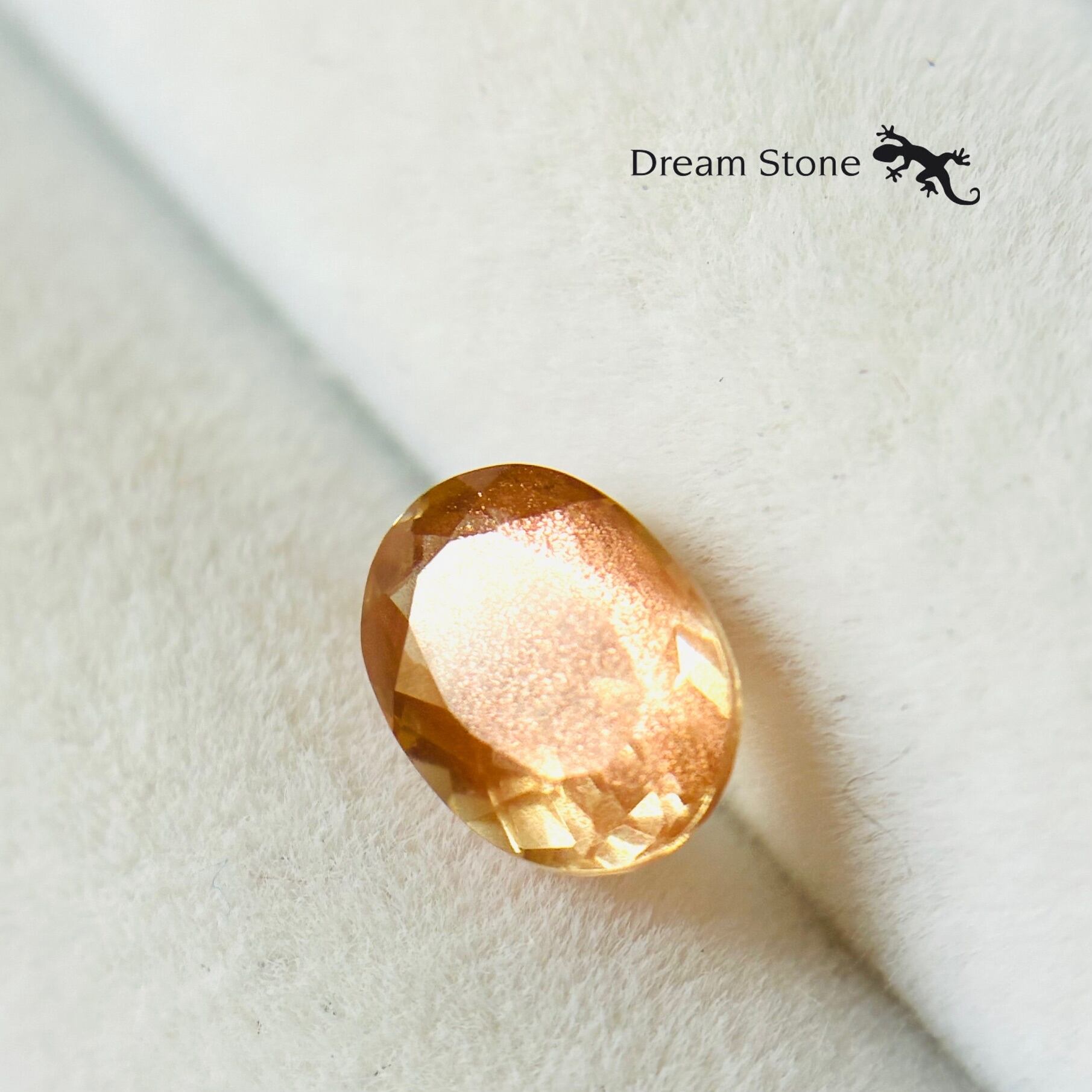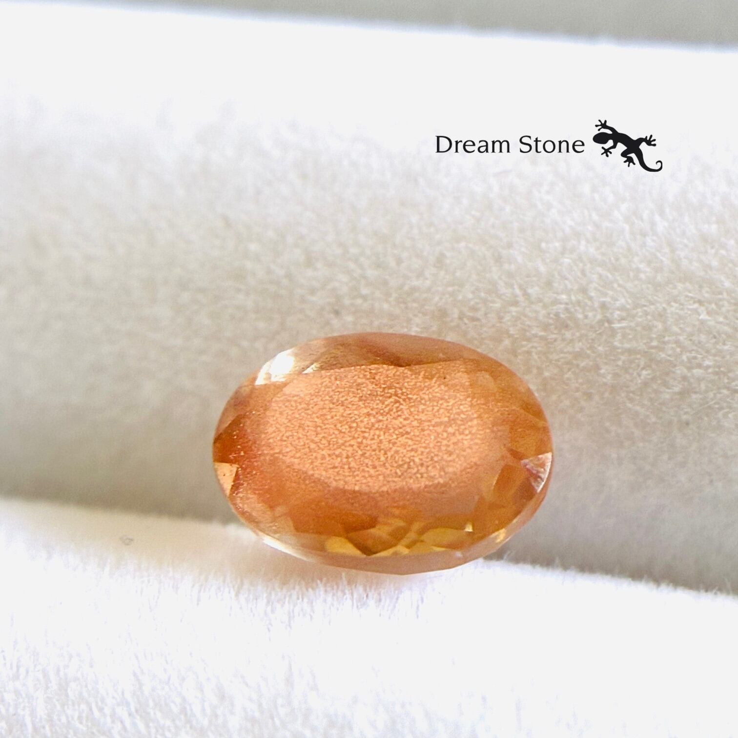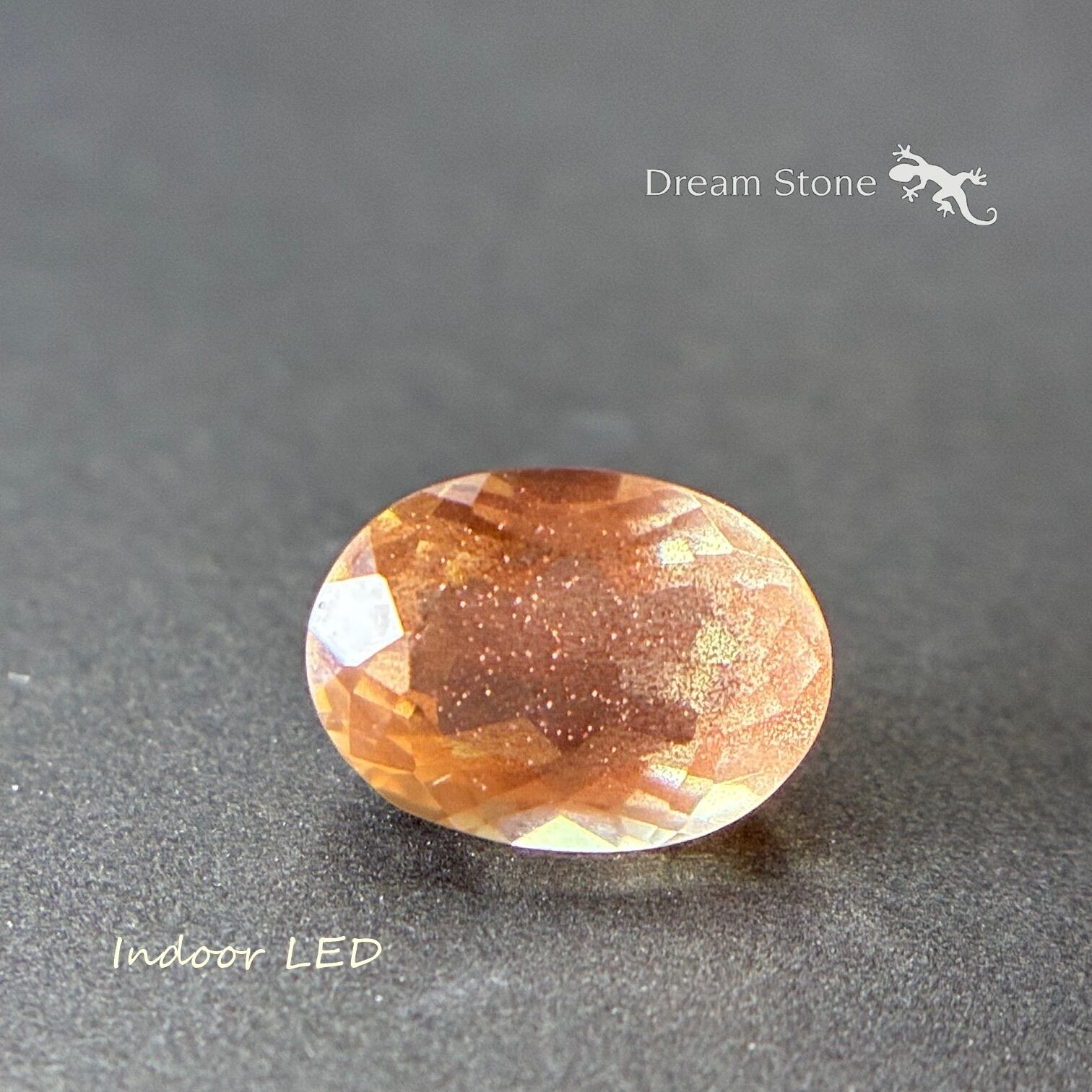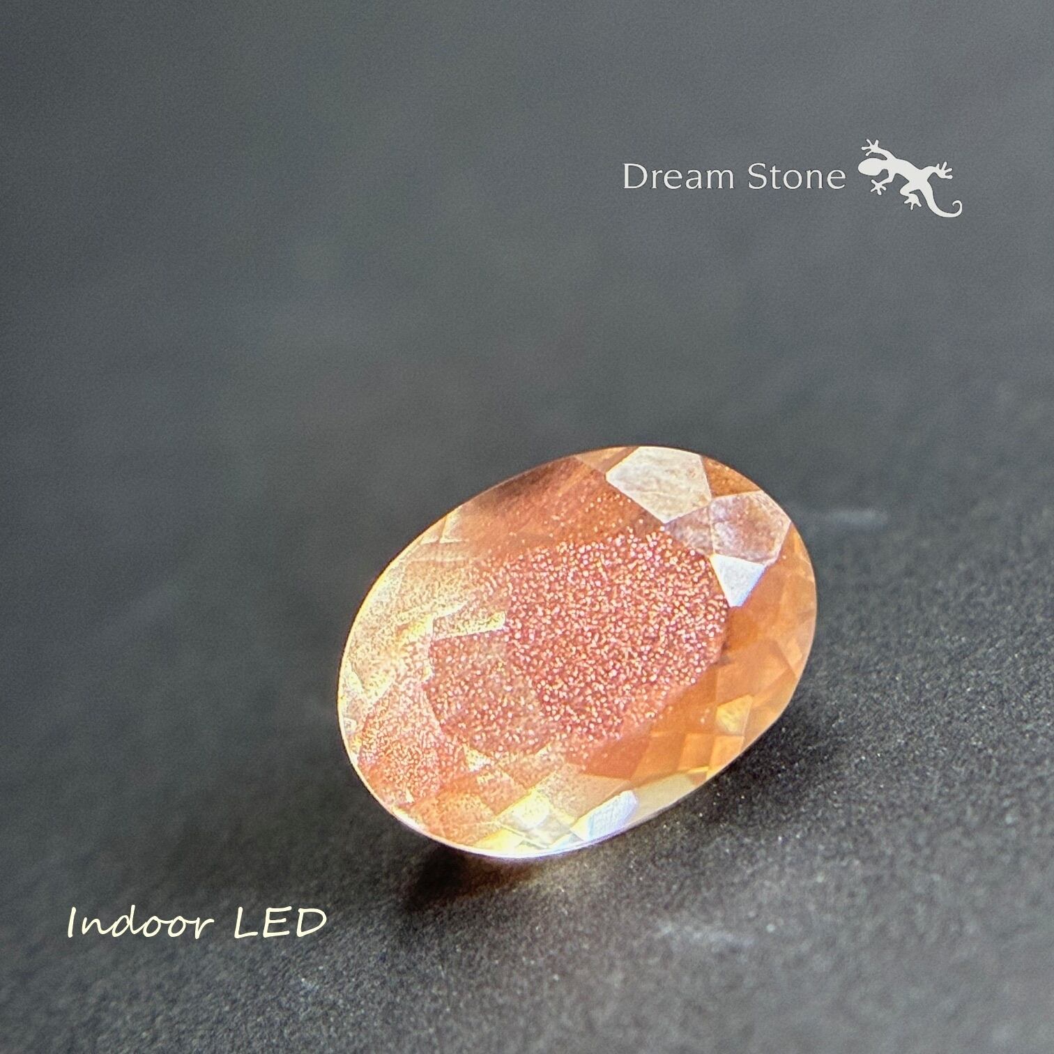 オレゴンの大地で悠久の時を経て産出されたサンストーン。内包された銅由来のインクルージョンが織りなす繊細で奥行きのあるアベンチュレッセンスが、天然石ならではの芸術を生み出しています。控えめな一見から、角度を変えるたびに雅な光を放ち、石のテーブル面いっぱいに広がります。自然が描いた光の表情を、お手に取ってお楽しみください。(ソーティングJ139582付き)