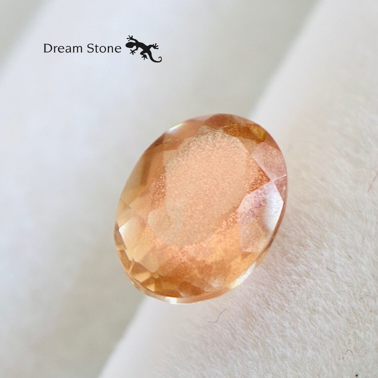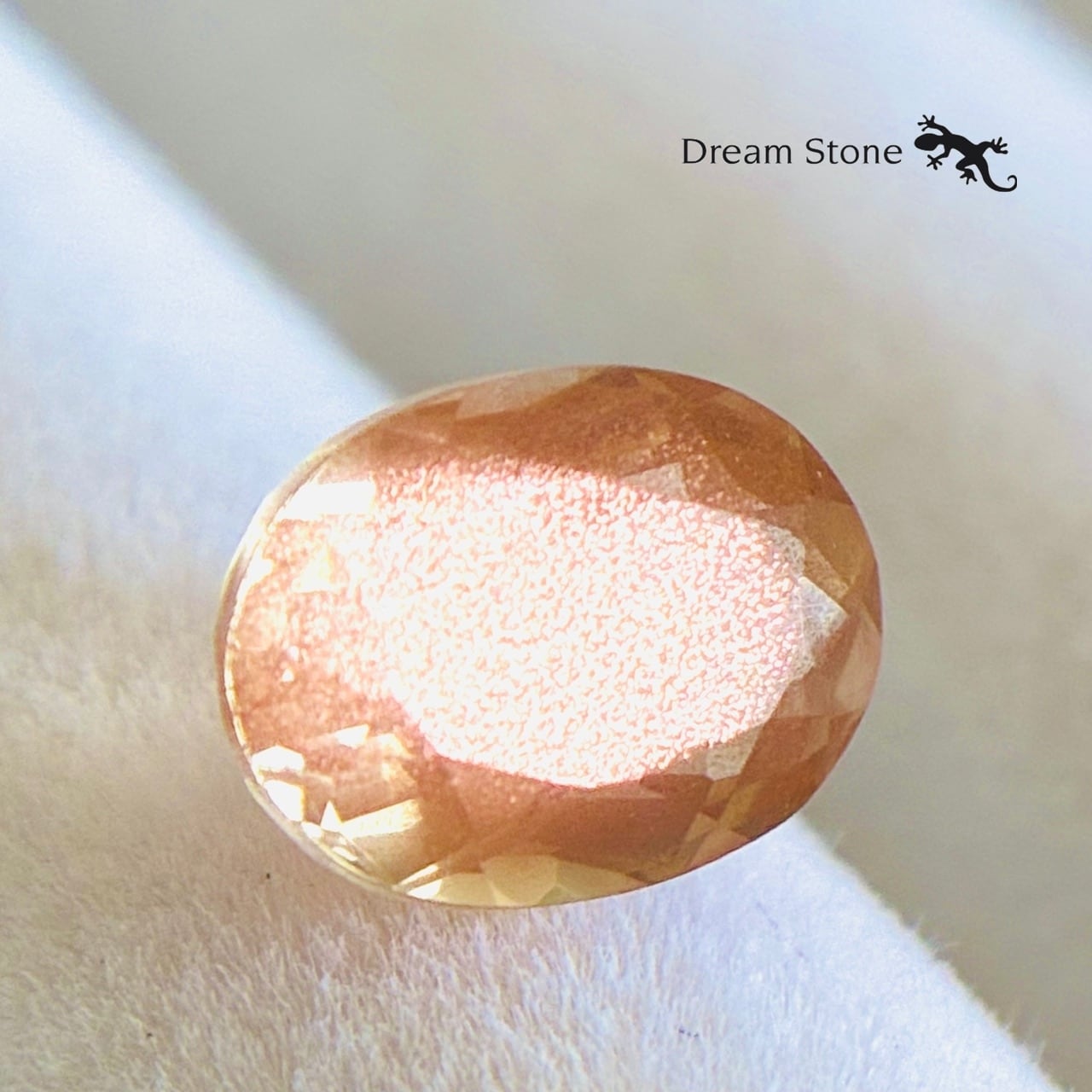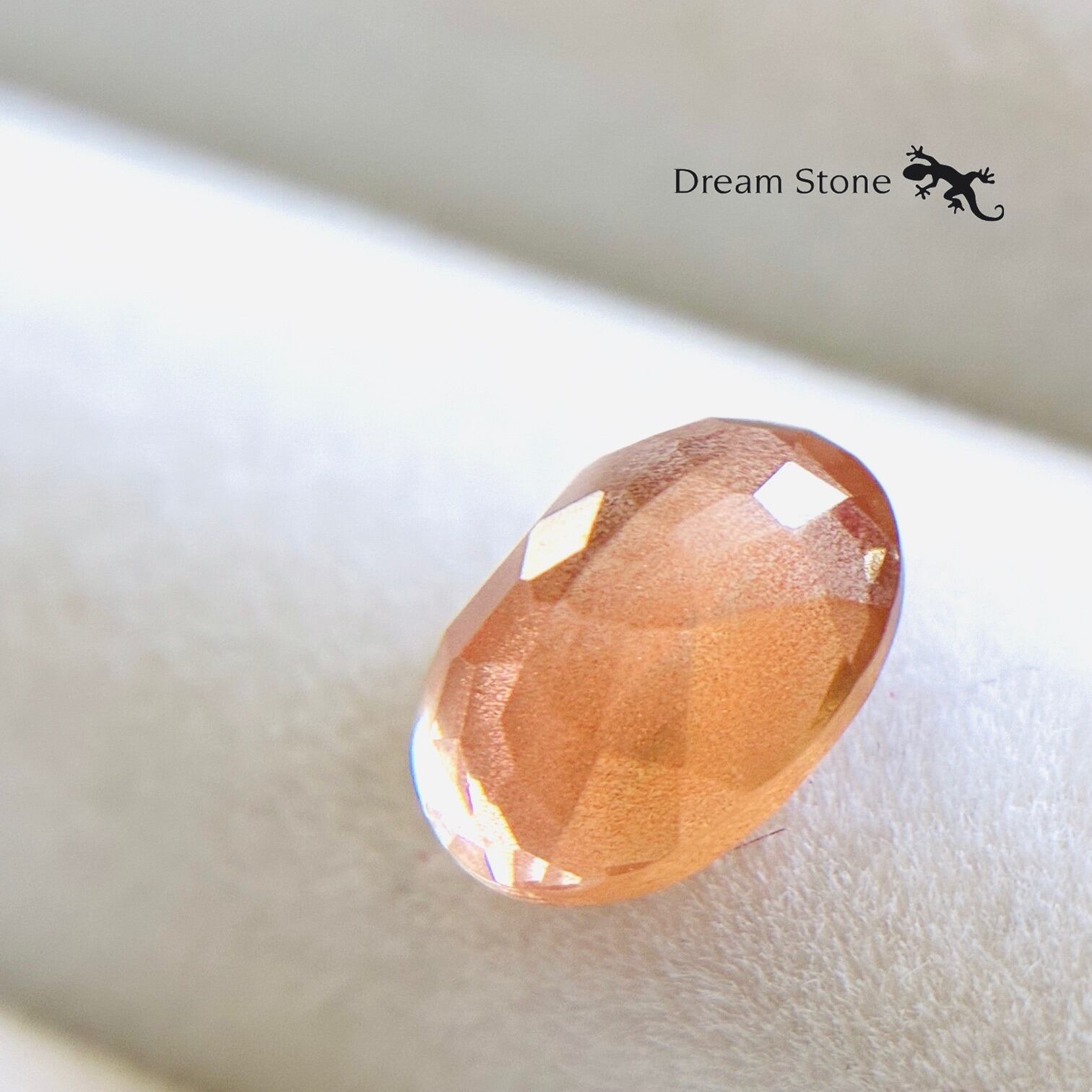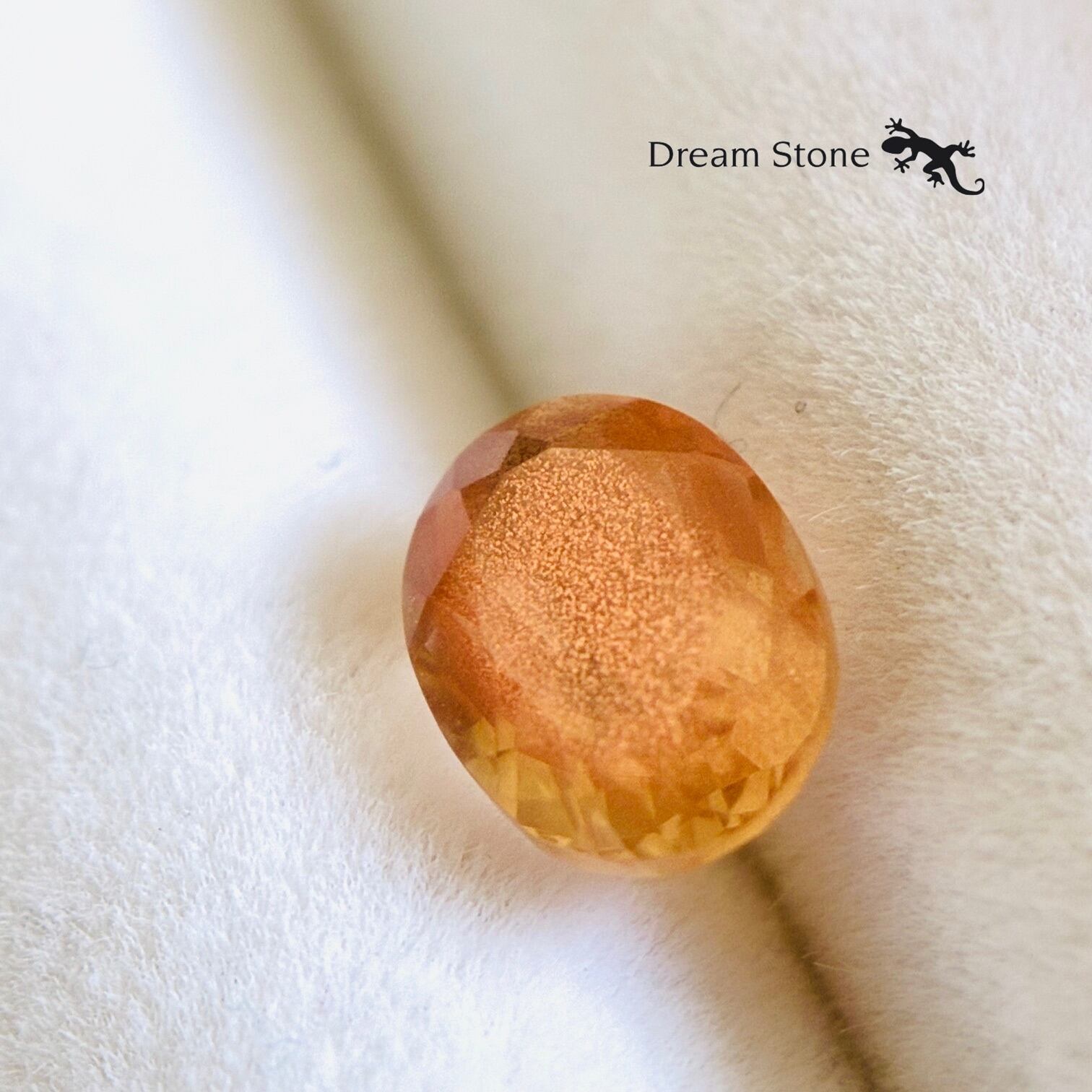 オレゴンの大地で悠久の時を経て産出されたサンストーン。内包された銅由来のインクルージョンが織りなす繊細で奥行きのあるアベンチュレッセンスが、天然石ならではの芸術を生み出しています。控えめな一見から、角度を変えるたびに雅な光を放ち、石のテーブル面いっぱいに広がります。自然が描いた光の表情を、お手に取ってお楽しみください。(ソーティングJ139582付き)
