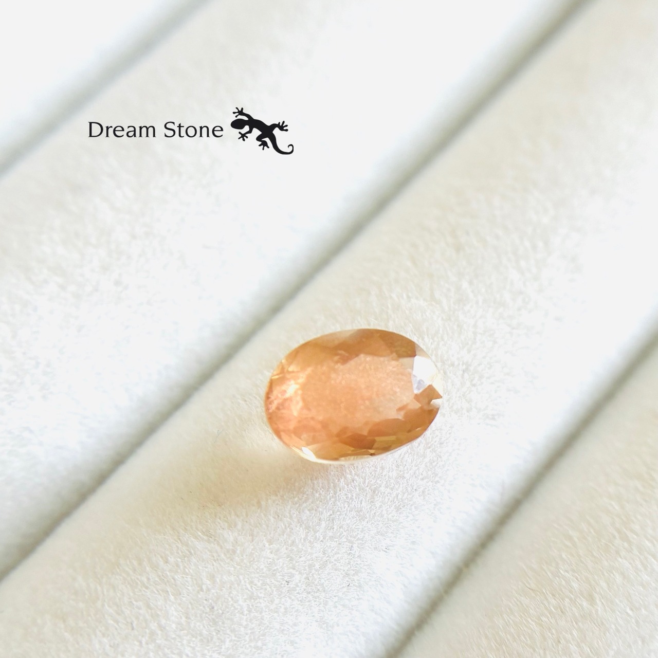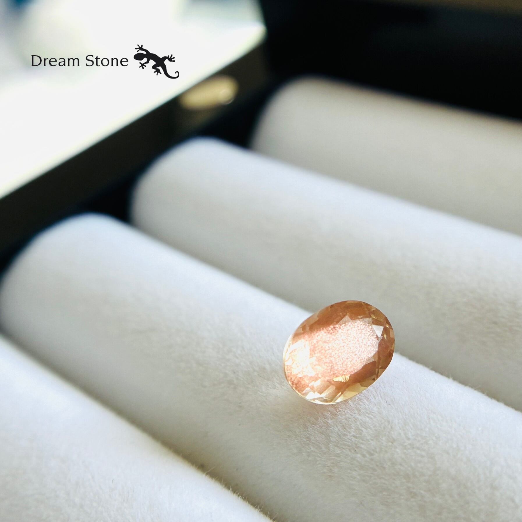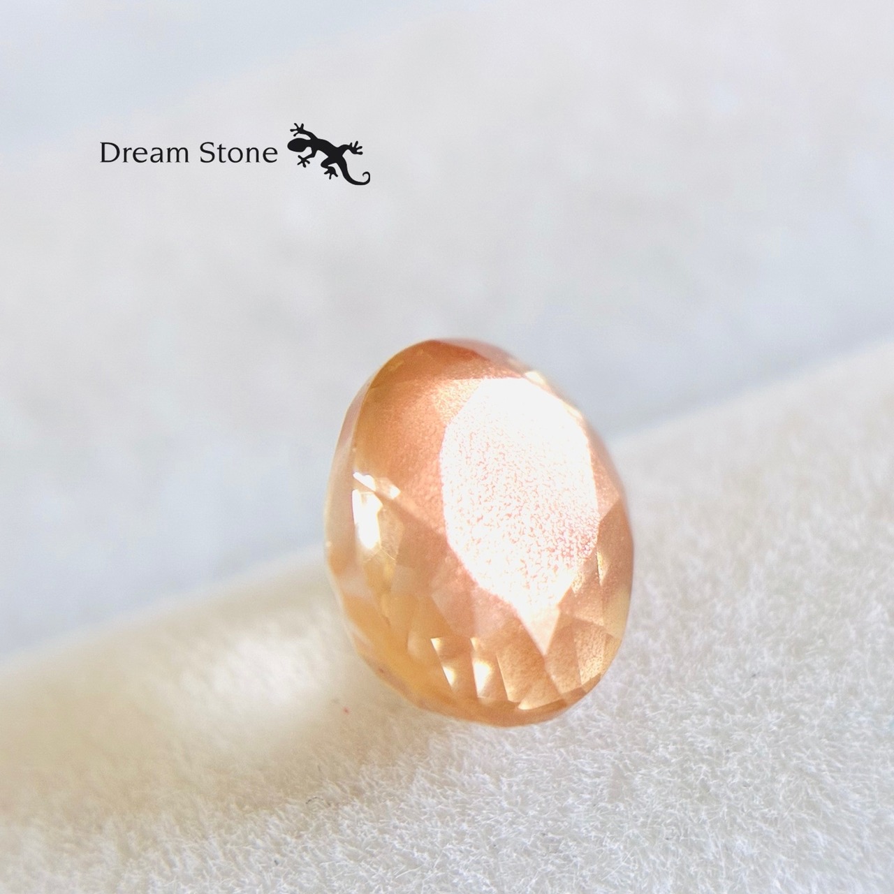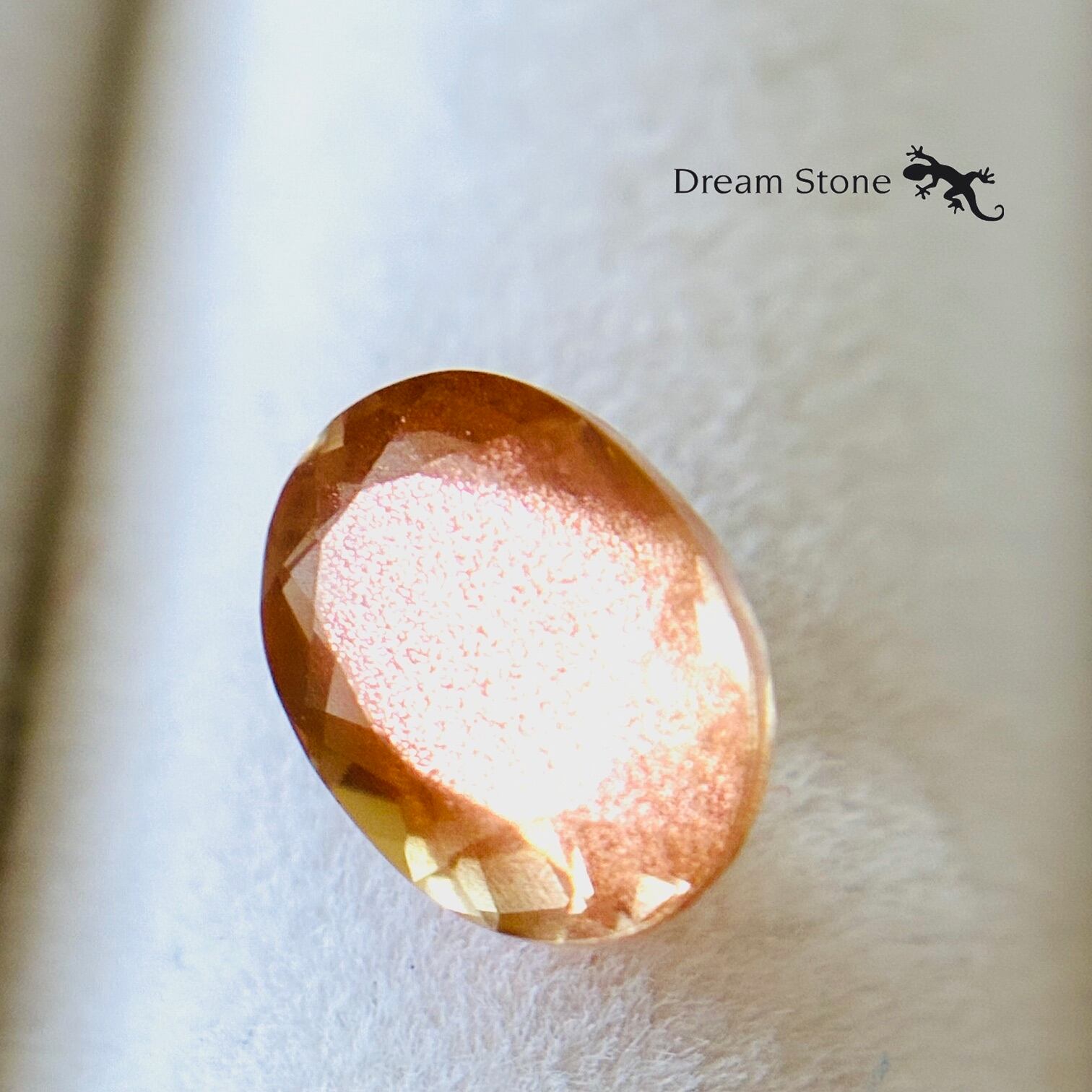 オレゴンの大地で悠久の時を経て産出されたサンストーン。内包された銅由来のインクルージョンが織りなす繊細で奥行きのあるアベンチュレッセンスが、天然石ならではの芸術を生み出しています。控えめな一見から、角度を変えるたびに雅な光を放ち、石のテーブル面いっぱいに広がります。自然が描いた光の表情を、お手に取ってお楽しみください。(ソーティングJ139582付き)