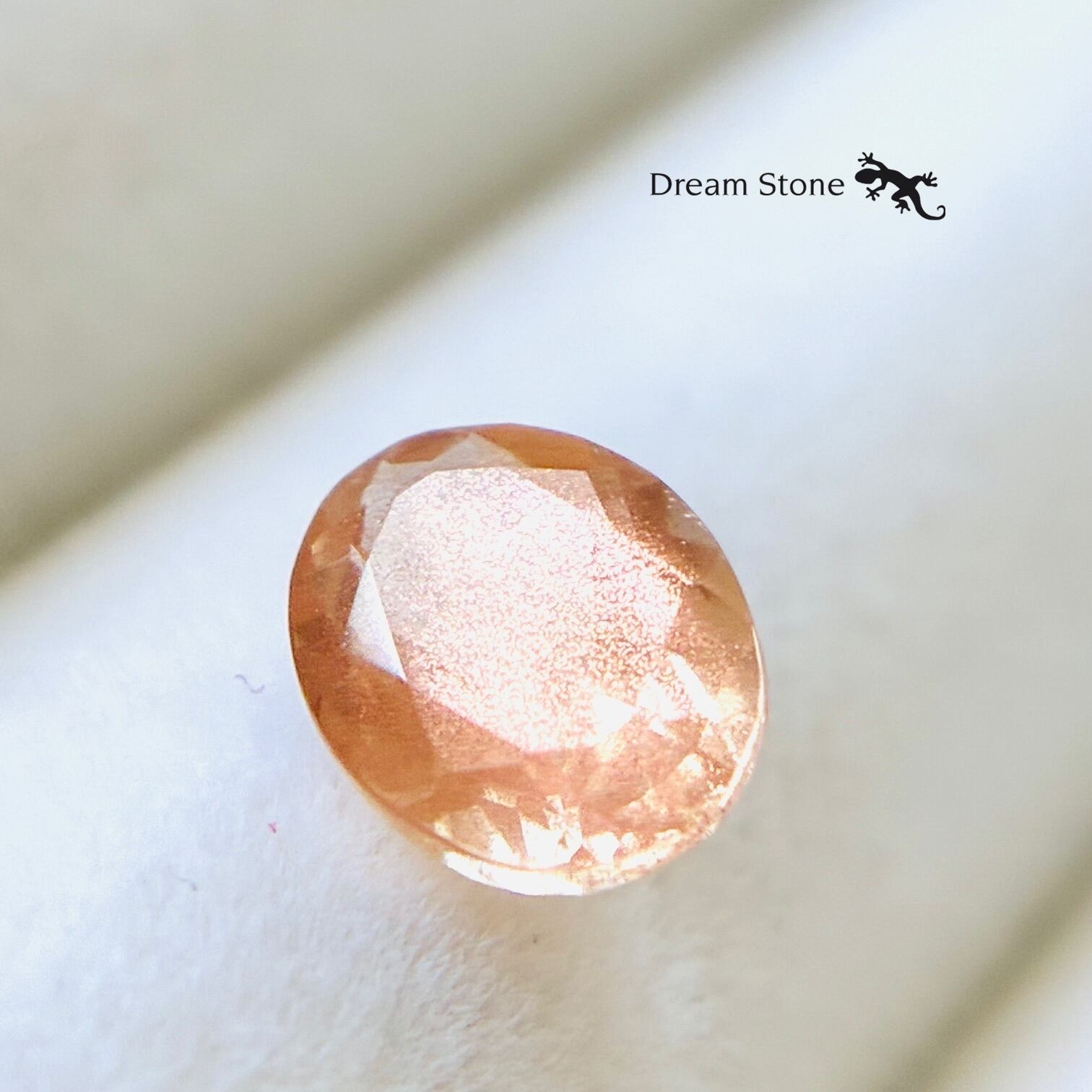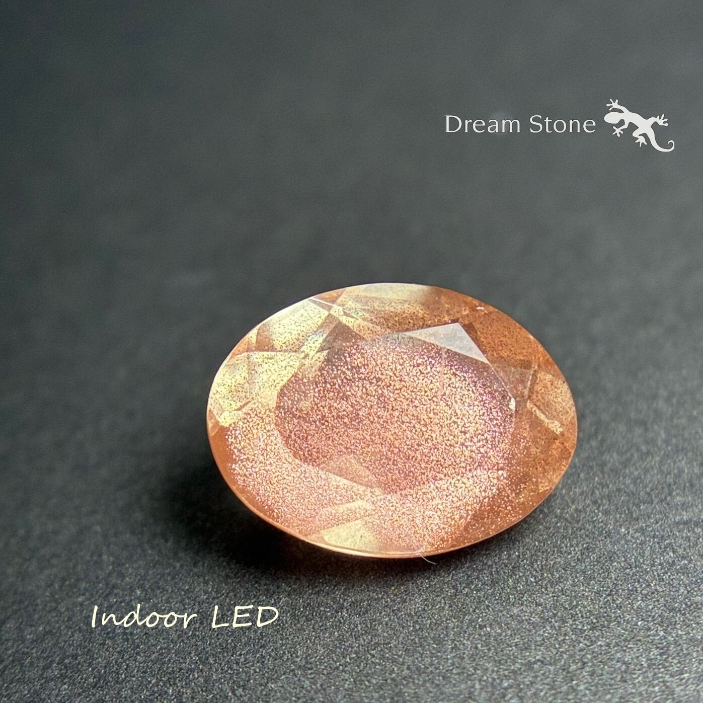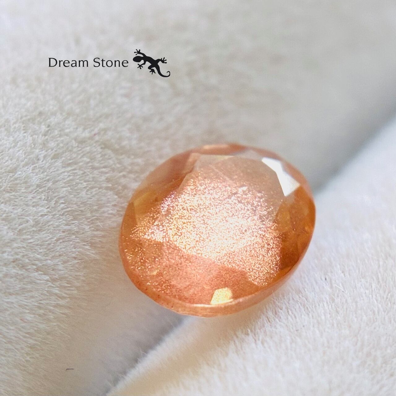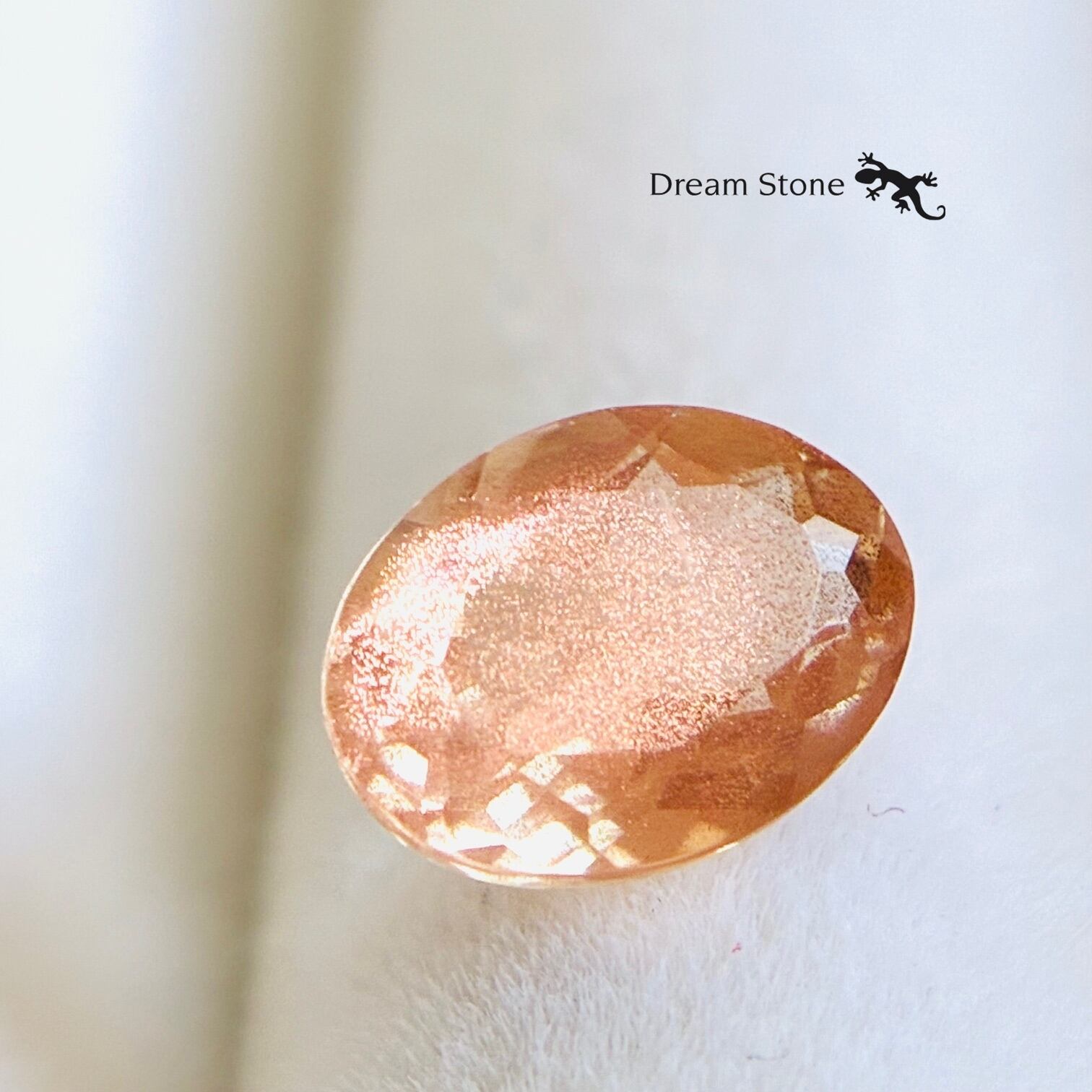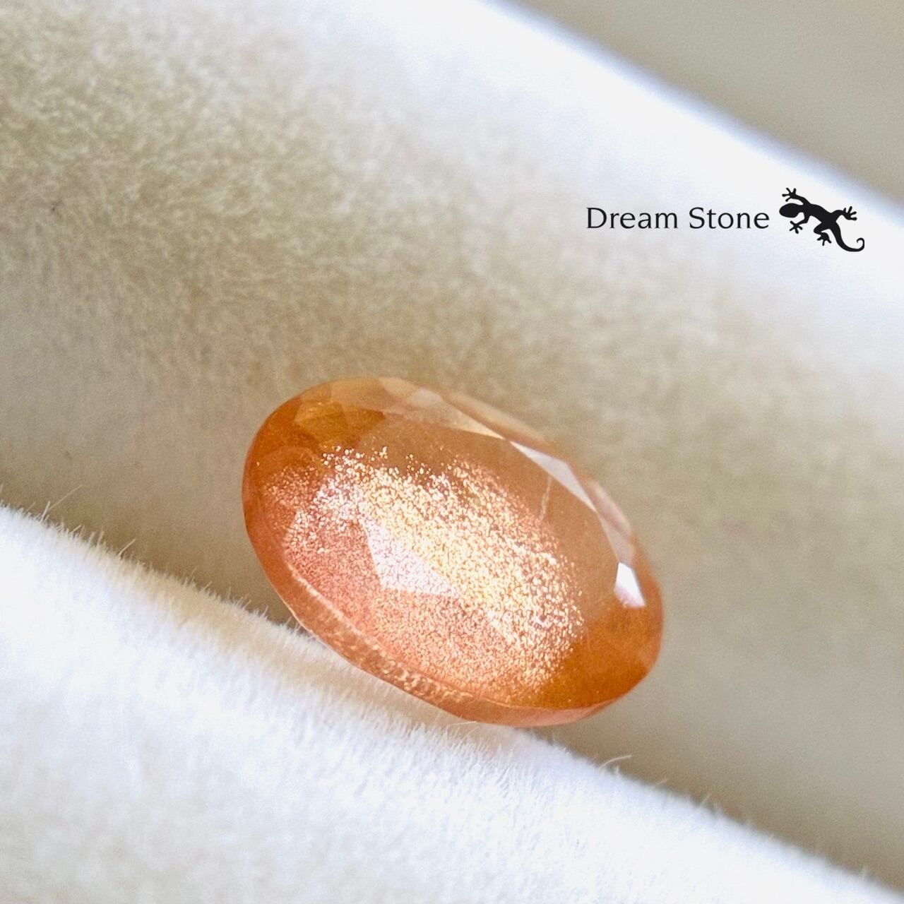 オレゴンの大地で悠久の時を経て産出されたサンストーン。内包された銅由来のインクルージョンが織りなす繊細で奥行きのあるアベンチュレッセンスが、天然石ならではの芸術を生み出しています。控えめな一見から、角度を変えるたびに雅な光を放ち、石のテーブル面いっぱいに広がります。自然が描いた光の表情を、お手に取ってお楽しみください。(J139579ソーティング付き)