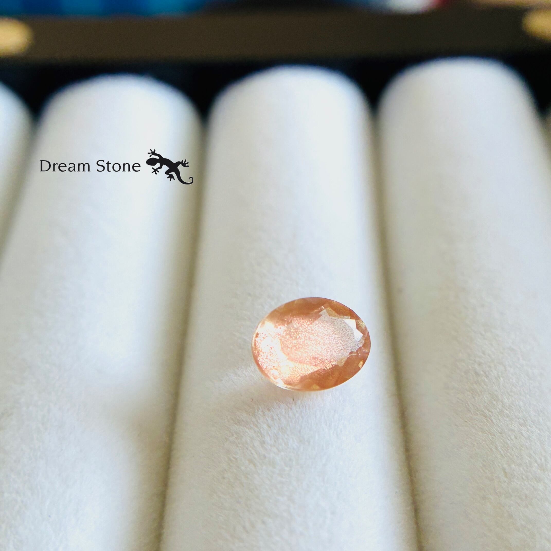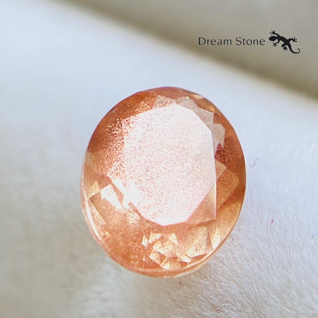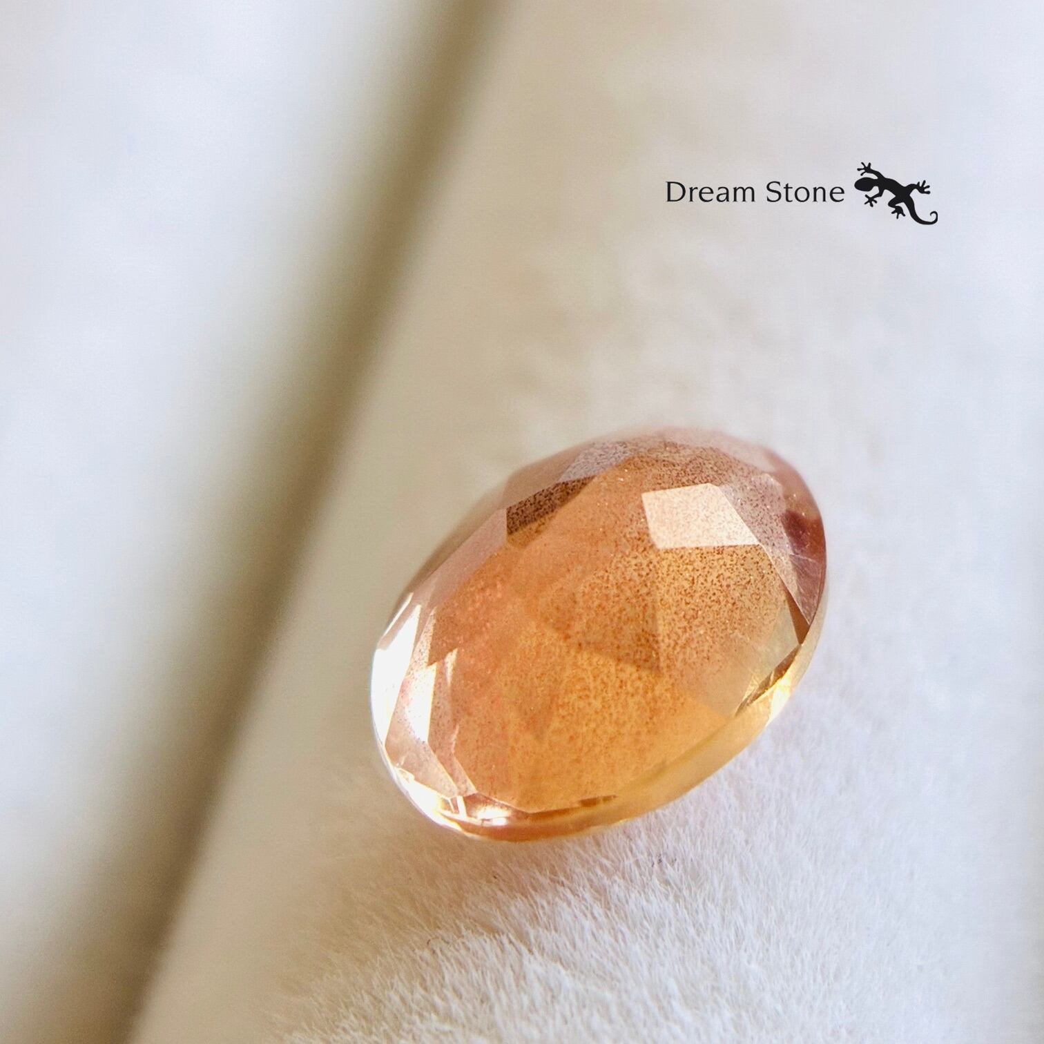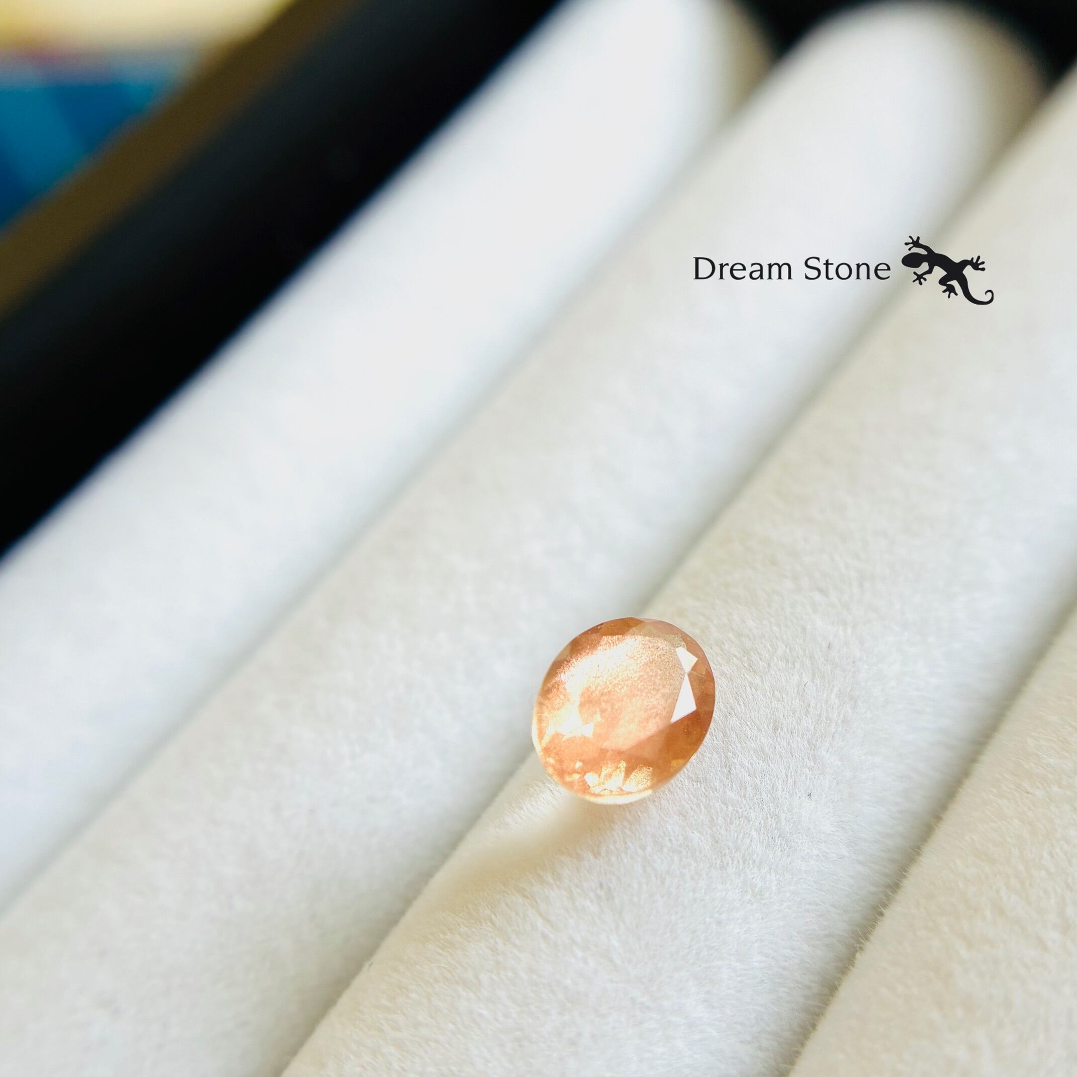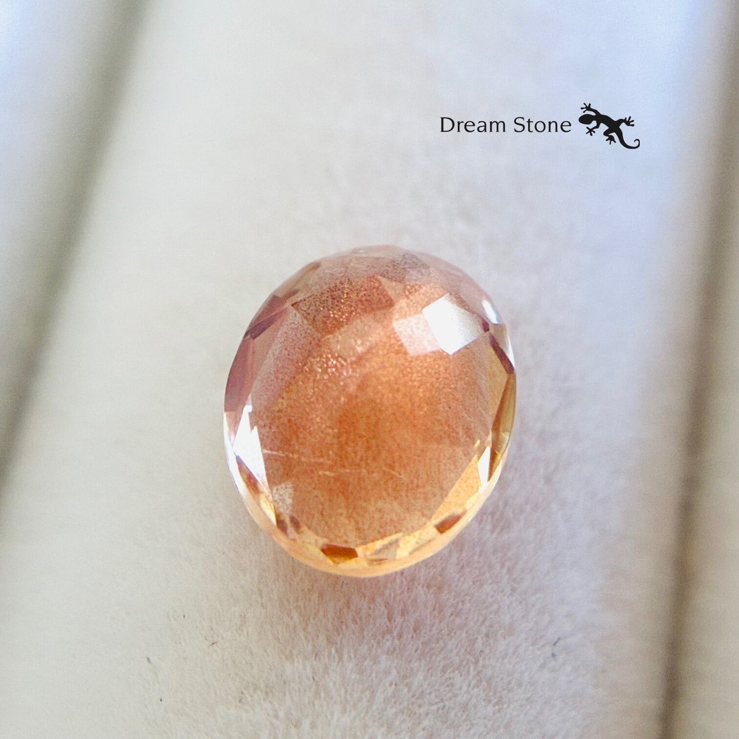 オレゴンの大地で悠久の時を経て産出されたサンストーン。内包された銅由来のインクルージョンが織りなす繊細で奥行きのあるアベンチュレッセンスが、天然石ならではの芸術を生み出しています。控えめな一見から、角度を変えるたびに雅な光を放ち、石のテーブル面いっぱいに広がります。自然が描いた光の表情を、お手に取ってお楽しみください。(J139579ソーティング付き)