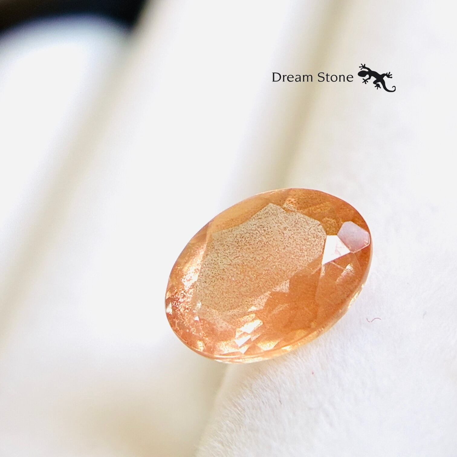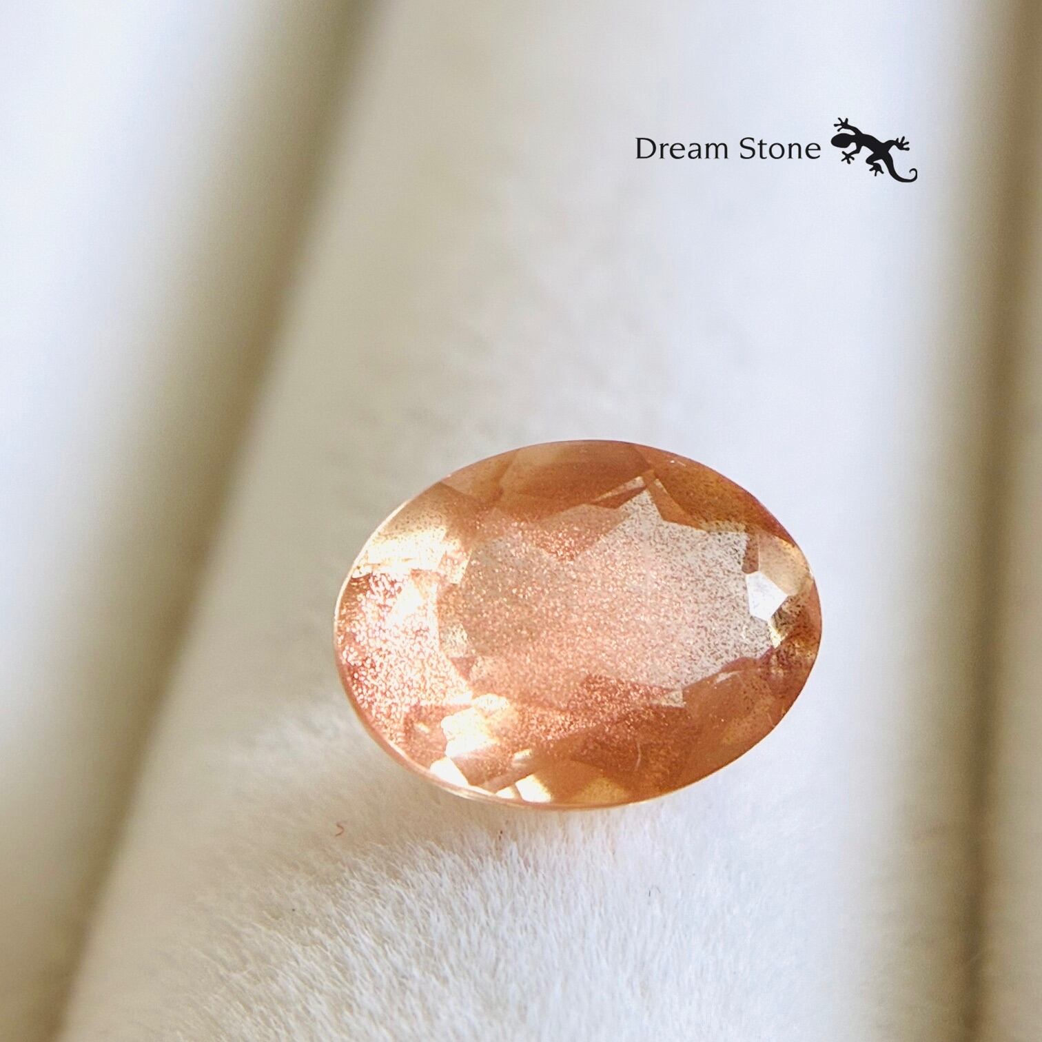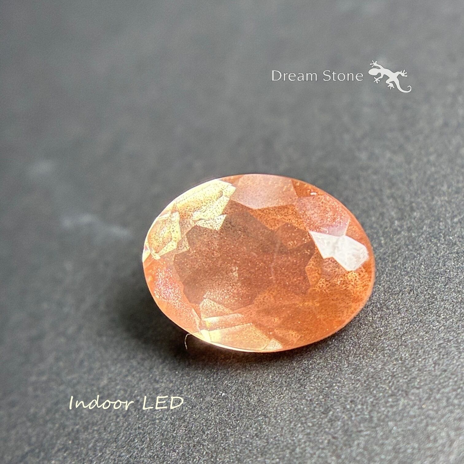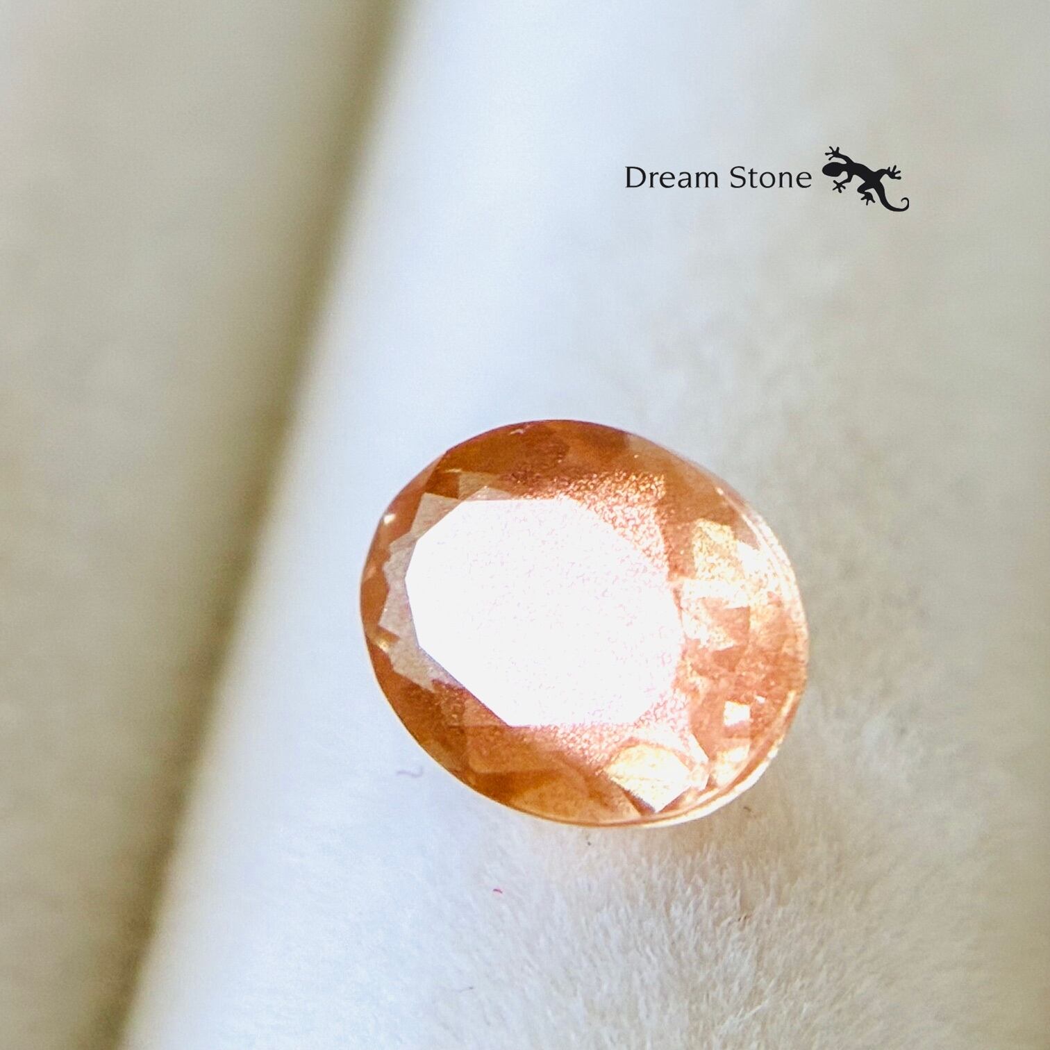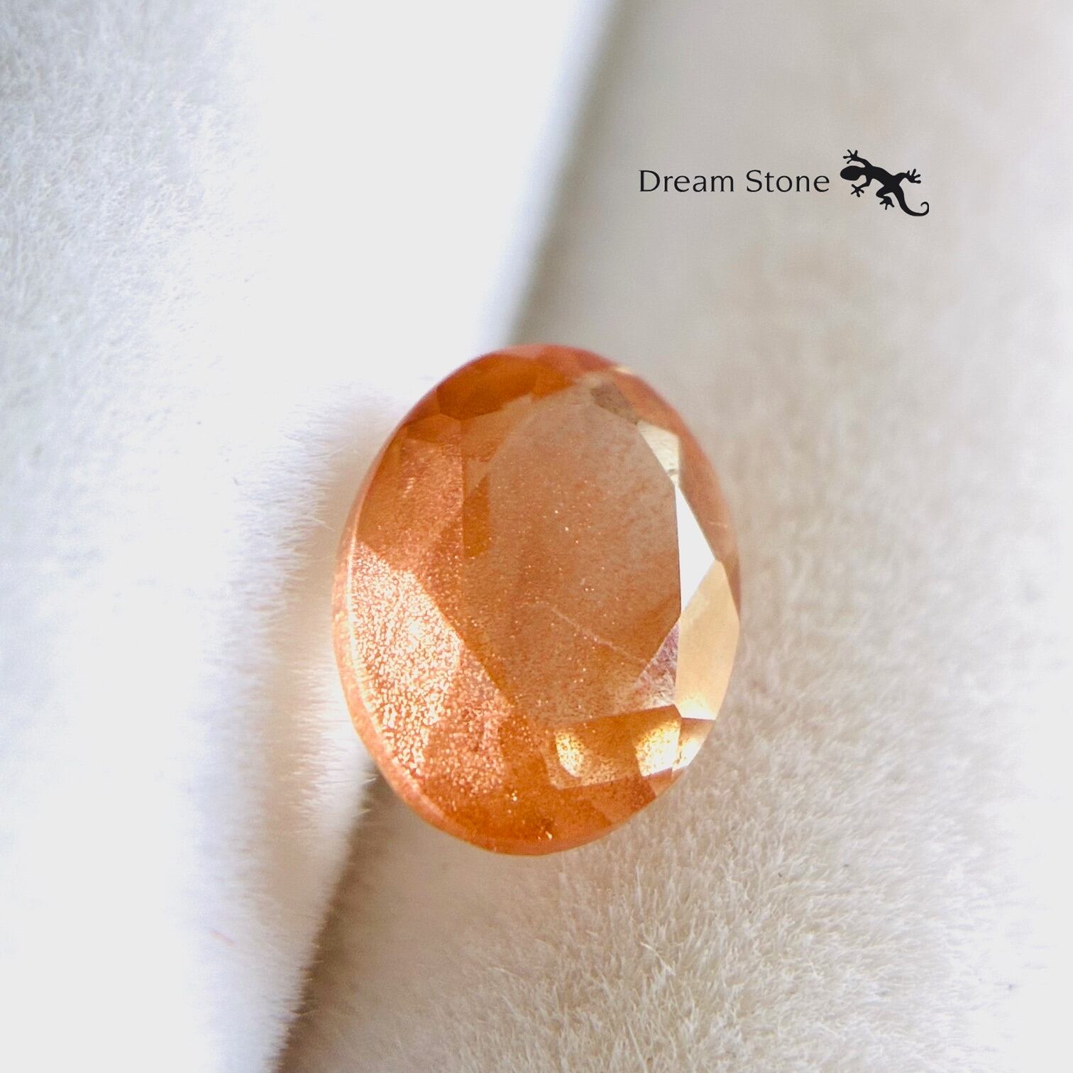 オレゴンの大地で悠久の時を経て産出されたサンストーン。内包された銅由来のインクルージョンが織りなす繊細で奥行きのあるアベンチュレッセンスが、天然石ならではの芸術を生み出しています。控えめな一見から、角度を変えるたびに雅な光を放ち、石のテーブル面いっぱいに広がります。自然が描いた光の表情を、お手に取ってお楽しみください。(J139579ソーティング付き)