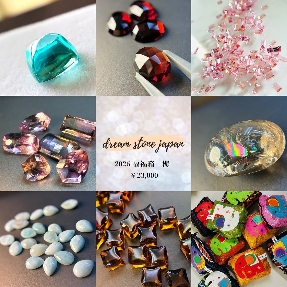 今年も始まりました【2026初売り/福福箱】。様々な石を取り揃え、ぎゅっと箱に詰め込みました。どれがお手元に来るかは、石とのご縁…。何が入っているのかわからない、そんなお楽しみシークレットストーンも含めた8石と、福福ポーチ付きとなっております。
