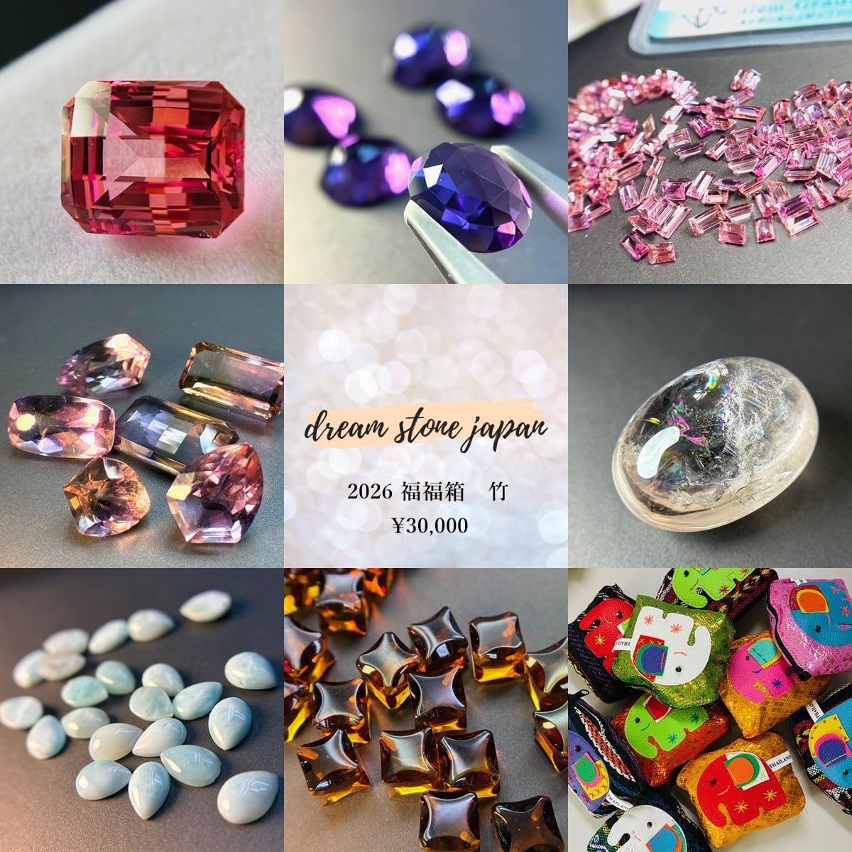 今年も始まりました【2026初売り/福福箱】。様々な石を取り揃え、ぎゅっと箱に詰め込みました。どれがお手元に来るかは、石とのご縁…。何が入っているのかわからない、そんなお楽しみシークレットストーンも含めた8石と、福福ポーチ付きとなっております。
