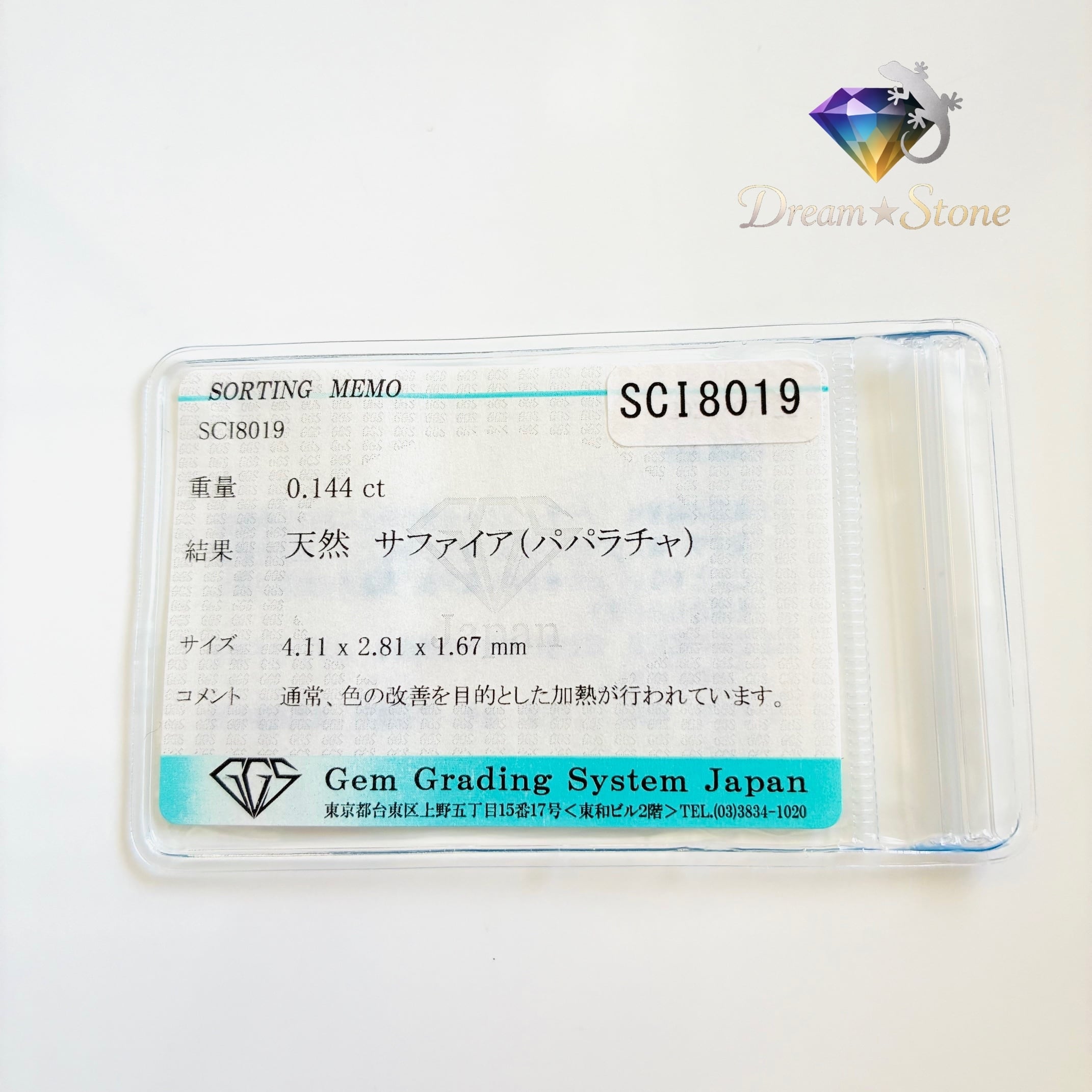 【パパラチアサファイア 0.144ct / ソーティング付 SCI8019】