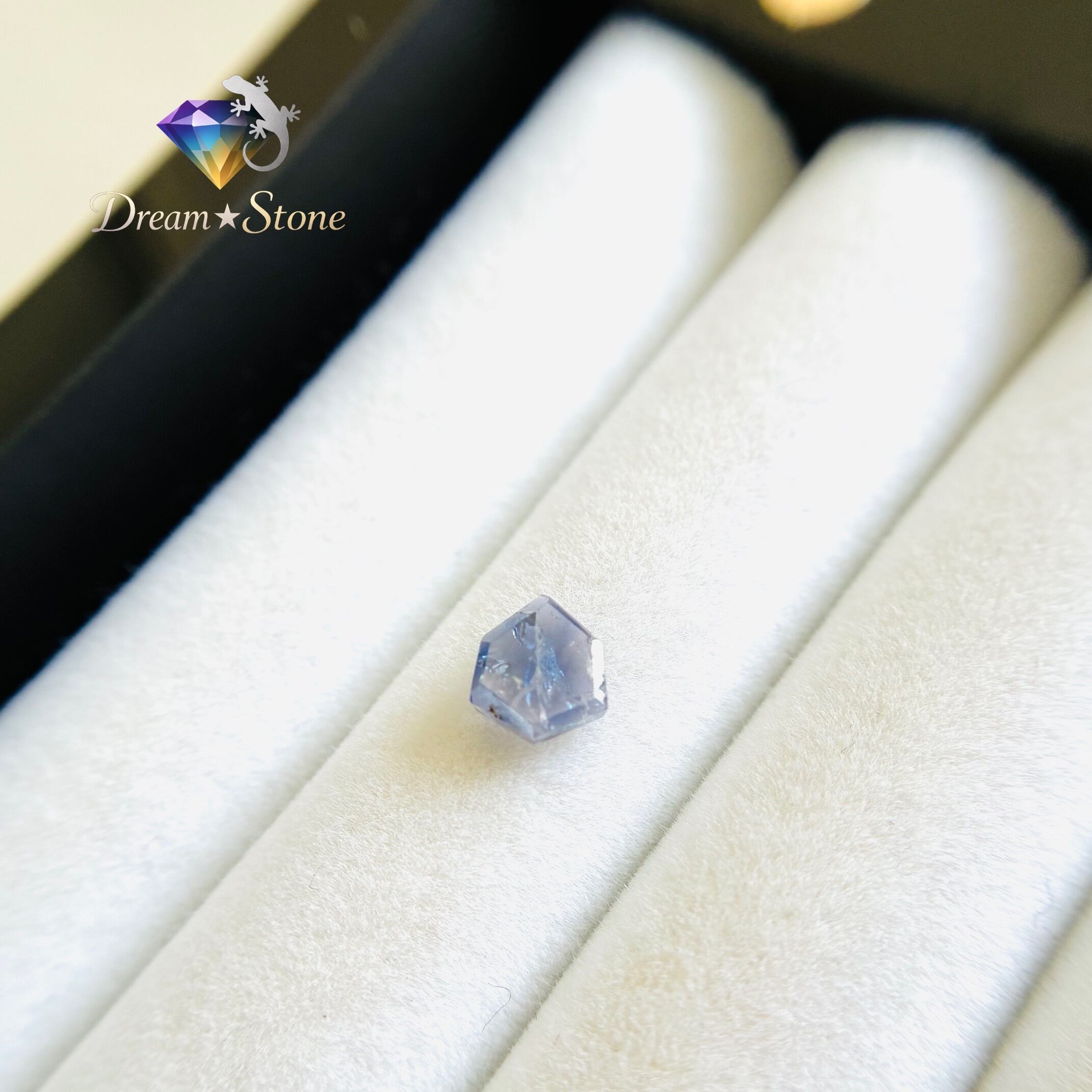 淡いバイオレットブルーが美しいウィンザーサファイア。ひんやりとした透明感に、やや霧がかったような雰囲気があり、全体的に静かな美しさと落ち着いた神秘性を感じる石です。